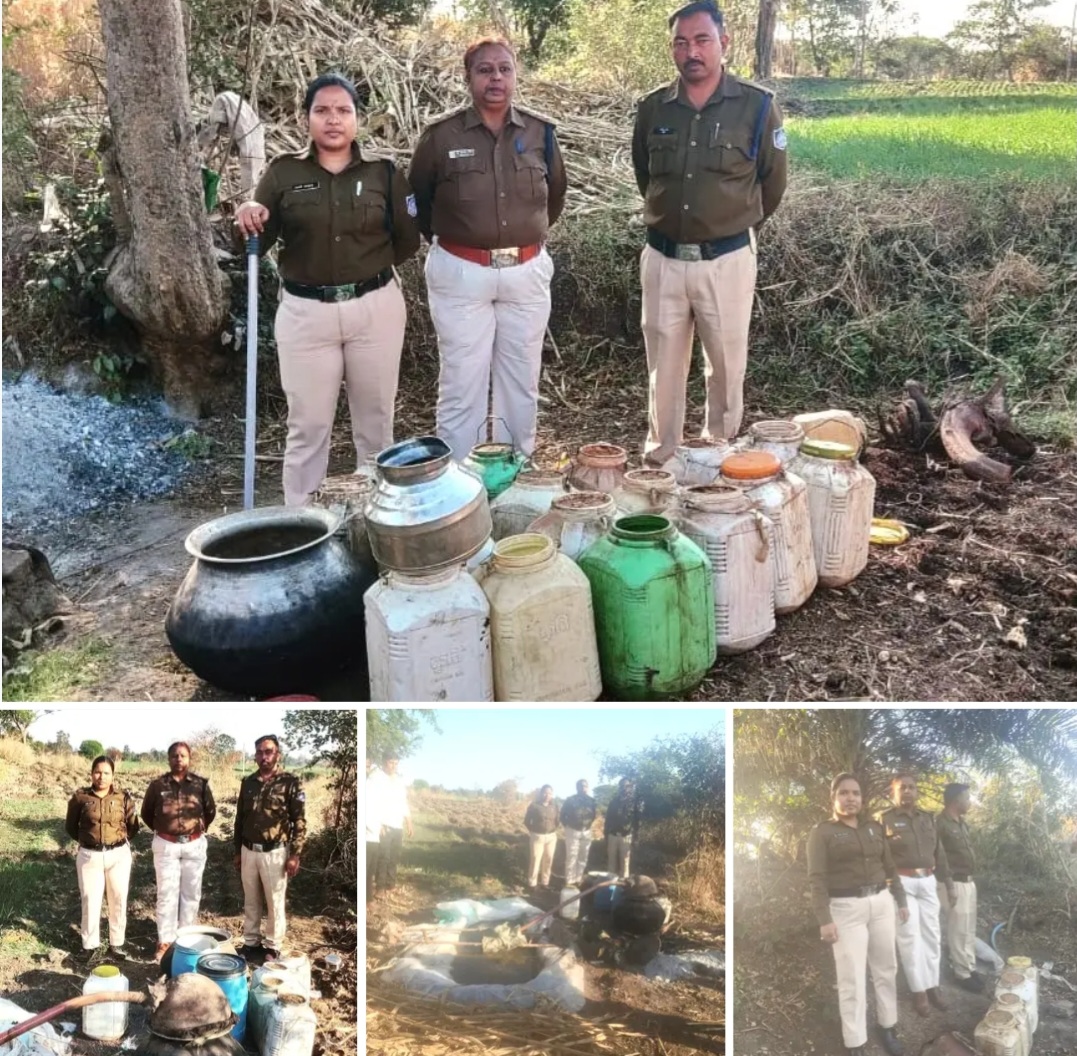 कलेक्टर श्री हरेंद्र नारायन के निर्देशानुसार सहायक आबकारी आयुक्त श्री बी.आर.वैद्य के मार्गदर्शन में वृत्त चौरई में आज आबकारी विभाग एवं पुलिस स्टाफ चांद के द्वारा अलग-अलग स्थानों में दबिश दी गई, जिसमें वृत्त के ग्राम नौलझिर, बम्हनी, देवरी, कुकरई, सिंगोड़ी में दबिश के दौरान अलग-अलग स्थानों से 1000 किलोग्राम महुआ लहान एवं 25 लीटर अवैध हाथभट्टी कच्ची मदिरा एवं एक चढ़ी भट्टी बरामद की गई .