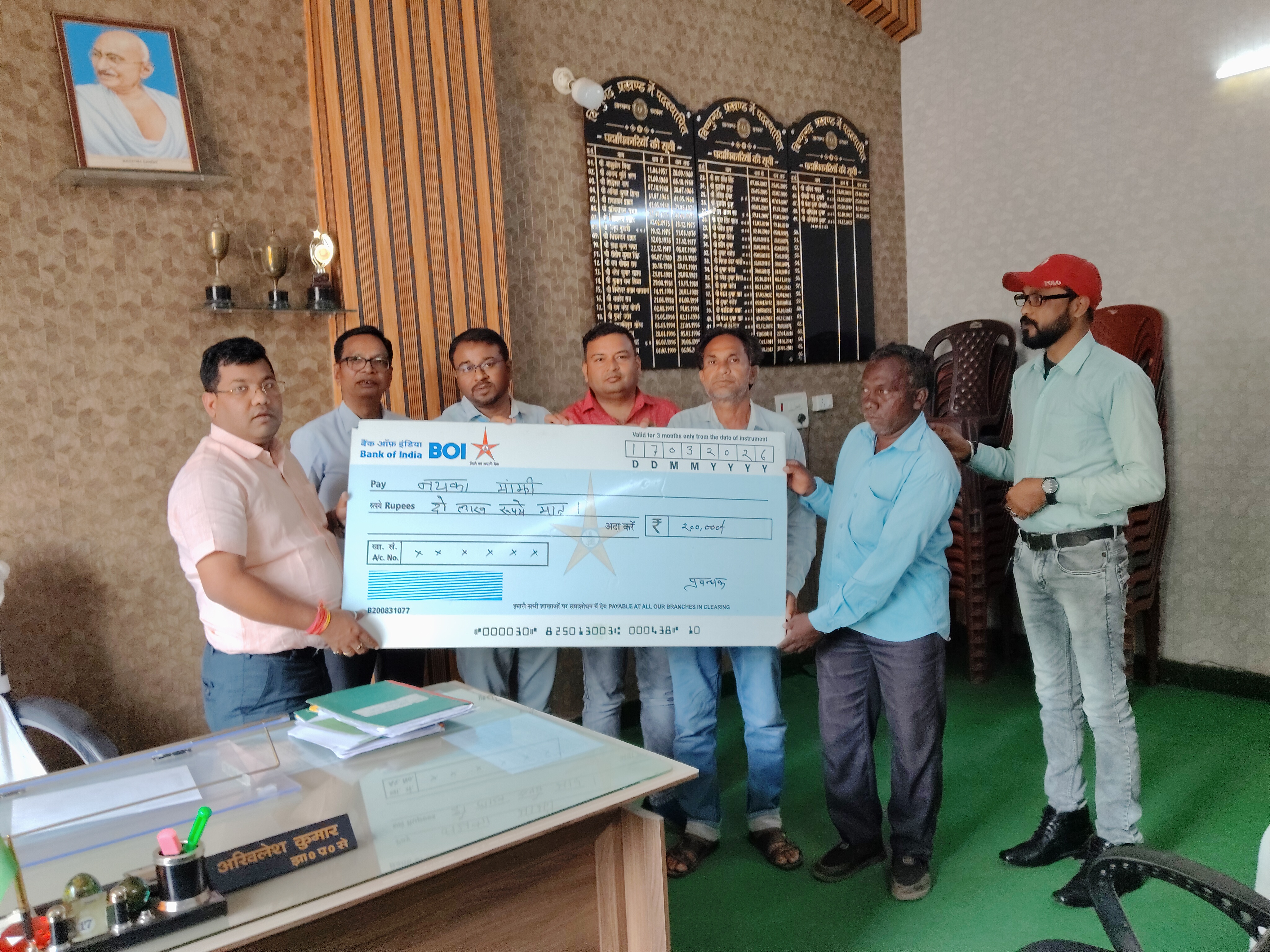 विष्णुगढ़ प्रखंड के गोविंदपुर पंचायत अंतर्गत की गिधिनिया के नायका मांझी के 22 वर्षीय पुत्री मनी कुमारी की दुर्घटना में मृत्यु हो गई थी इसकी सूचना मिलते ही कागजी प्रक्रिया के बाद बैंक ऑफ़ इंडिया में प्रधानमंत्री सुरक्षा बीमा योजना से निबाधित थी इसके बाद परिजन को लाभान्वित किया गया इस मौके पर एलडीएम हजारीबाग अमित प्रकाश किशोर कुमार शाखा प्रबंधक अनीता देवी सुजीत श्रीवास्तव रघुनंदन कुमार अयोध्या प्रसाद समेत अन्य लोग मौजूद रहे।