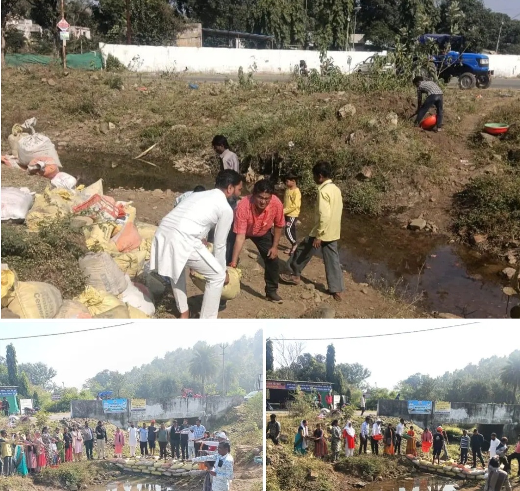जल संचय अभियान के अंतर्गत जिला कलेक्टर श्री हरेंद्र नारायन के निर्देशानुसार म.प्र. जन अभियान परिषद छिंदवाड़ा के जिला समन्वयक श्री अखिलेश जैन एवं ब्लॉक समन्वयक श्री संजय कुमार बामने के मार्गदर्शन एवं उपस्थिति में विकासखंड जुन्नारदेव में जल संरक्षण के लिए जल संचय अभियान के अंतर्गत सेक्टर 02 ग्राम पनारा में समाजकार्य के छात्र-छात्राओं एवं ग्राम विकास प्रस्फुटन समिति पनारा, डुंगरिया व ग्रामीणों ने घोघरा नाला भारत कालरी के पास 80 बोरियों का बोरी-बंधान कर जल संरक्षण किया। जिसमें ग्राम पनारा में ग्रामीण महिला-पुरुषों व बच्चों ने बड़ी संख्या में सहयोग किया। अपने घर से खाली बोरिया लेकर और विभिन्न दूसरे साधनों से जल संरक्षण के लिए सहयोग किया।