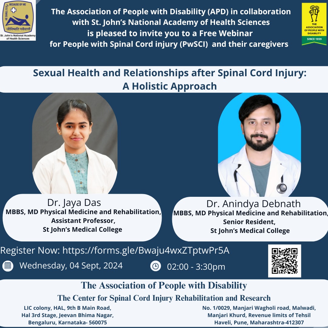 Sexual Health and Relationships after SCI, APD in collaboration with St. Johns National academy of Health Science on 4th Sep @ 2-3.30 Bookmark ID 665473