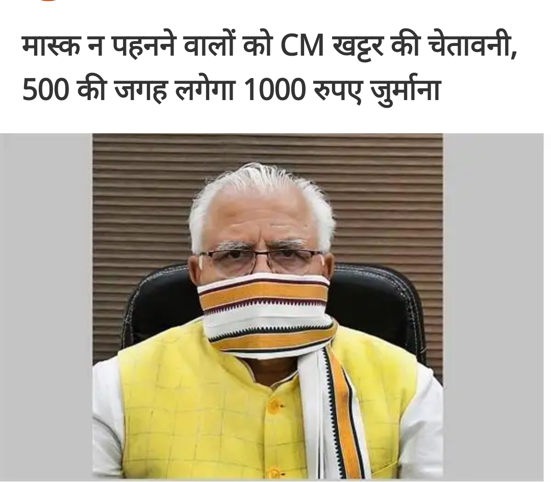 Haryana ka mukhymantri Manohar Lal Khattar ka bada faisla marks na pahnane walon per ho sakti se kaarvayi CM