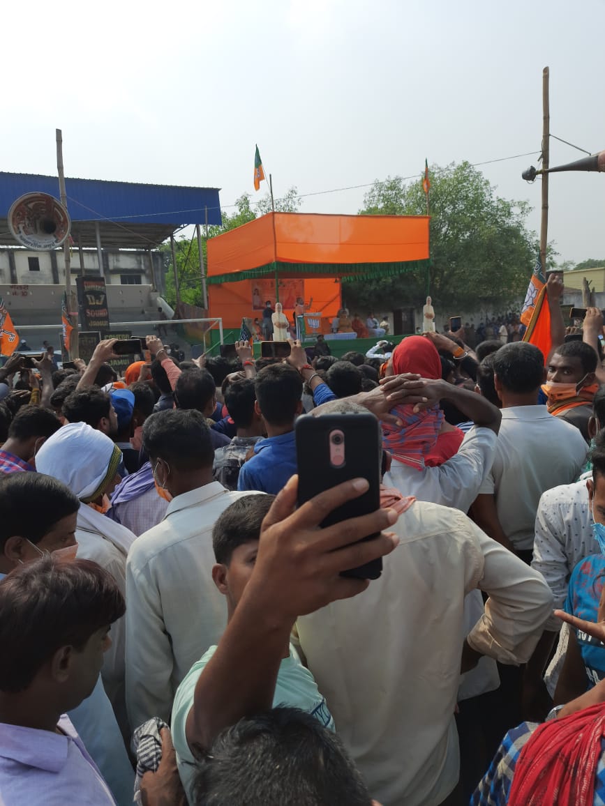 बिहार राज्य के जमुई जिला के गिद्धौर प्रखंड से आसुतोष पांडेय ने मोबाईल वाणी के माध्यम से जानकारी दिया कि बिहार विधानसभा के चुनाव के लिए उत्तरप्रदेश के माननीय मुख्यमंत्री योगी आदित्यनाथ जी ने बिहार के कई विधान सभा क्षेत्रों में जनता से राष्ट्रीय जनतांत्रिक गठबंधन के प्रत्याशियों को वोट देने की अपील की.इन्होने अपने चुनावी रैली में मोदी सरकार के विकाश के उपलब्धियों को गिनाते हुए बिहार के विकास के लिए सरकार पर बल दिया।योगी आदित्यनाथ जी ने बीजेपी के पाॅपुलिस्ट एजेंडा राम मंदिर, जम्मू-कश्मीर से धारा 370 हटाने तथा पाकिस्तान में सर्जिकल स्ट्राइक की भी याद दिलाई।विस्तृत जानकारी के लिए ऑडियो पर क्लिक करें।