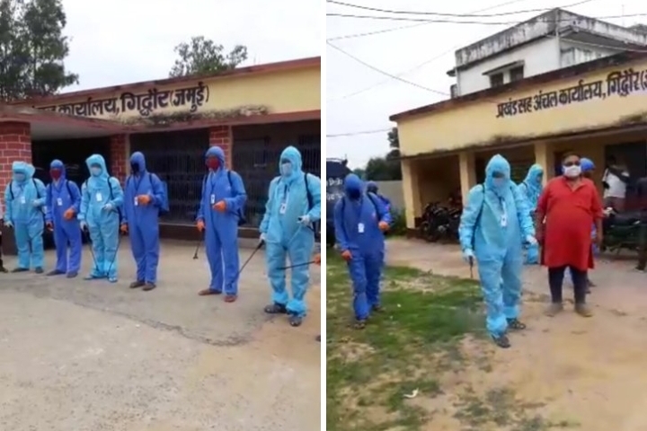 लोगों को कोरोना से बचाव हेतु नेशनल हेल्थ मिशन के द्वारा गिद्धौर प्रखंड मुख्यालय परिसर में सैनिटाइजर छिड़काव का प्रारंभ किया गया। विस्तार पूर्वक खबर सुनने के लिए ऑडियो क्लिक करें
