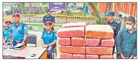 भारतीय नम्बर प्लेट लगे एक ट्रक पर लोड 180किलो गांजा के साथ एक भारतीय नागरिक को नेपाल पुलिस ने पकड़ा है। चितवन के एसपी रामेश्वर कार्की ने बताया कि राप्ती नगरपालिका वार्ड1 लोथर राजमार्ग में वीरगंज की ओर जा रहे एक ट्रक को पुलिस ने शक के आधार पर नियंत्रण में लिया। भारतीय नम्बर प्लेट के ट्रक की जांच की गई,जिसमें केबिन में छुपा कर रखे गए 180किलो गांजा बरामद हुआ। पकड़े गए ट्रक चालक की पहचान पूर्वी चम्पारण के रक्सौल निवासी 30 वर्षीय कुन्दन पटेल के रूप में हुई है।कुल 116पैकेट में गांजा रखा था।जिसे भारत ले जाने की योजना थी।मामले में आगे की कार्रवाई व जांच पड़ताल शुरू कर दी गई है।
