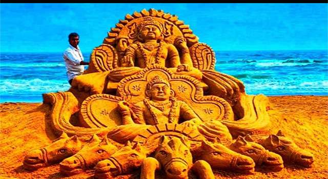 बिहार में लोक आस्था का महापर्व छठपूजा मंगलवार को सभी छठ व्रतियों ने उदयाचलगामी भगवान भास्कर को अर्ध्य देकर चार दिवसीय छठ पर्व का समापन किया। इसके पहले सोमवार को सभी छठव्रतधारियों ने शाम के समय अस्ताचंलगामी भगवान भास्कर को पहला अर्ध्य दिया था। वही अपनी आस्था को प्रकट करते पूर्वी चंपारण जिले के घोड़ासहन बिजबनी गांव निवासी अंतर्राष्ट्रीय सैंड आर्टिस्ट ने बिहार के गंगा तट पर 20 फीट ऊंची भगवान सूर्य की विशालकाय प्रतिमा उकेर कर अपनी भक्ति भावना प्रकट की। यह कलाकृति दो दिन तक सभी छठ व्रतियों के बिच आकर्षण का केंद्र रहा। बालू से बनी भगवान भास्कर को लोग नमन करते हुए अपने सेलफोन में सेल्फी भी ले रहे थे। बता दें कि सैंड आर्टिस्ट मधुरेंद्र ने ऐसे ही देश प्रदेश में हुए घटनाओं व ज्वलंत विषयों साहित सभी अवसरों पर अपनी विशेष कला का प्रदर्शन कर लोगों में नया संदेश देते रहते हैं। मौके पर उपस्थित हजारों छठ व्रतियों और आम लोगों ने बालू से बनी भगवान भास्कर की कलाकृति को प्रणाम करते रेत कलाकार मधुरेंद्र को बधाई भी दी।