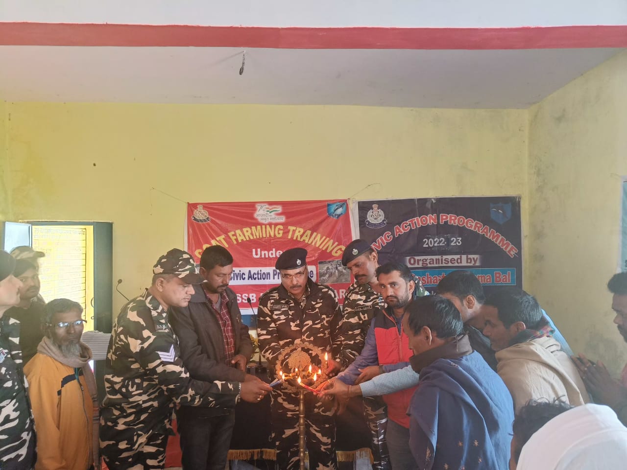 नागरिक कल्याण कार्यक्रम के तहत युवाओं को रोजगार को लेकर दिया गया प्रशिक्षण। सामुदायिक संवाददाता रेयाज आलम रामगढ़वा। 47 वी वाहिनी सशस्त्र सीमा बल रक्सौल पंटोका के तत्वाधान में शुक्रवार को नागरिक कल्याण कार्यक्रम-2022-23 के तहत सेनुवरिया बॉर्डर अंतर्गत आने वाले सीमावर्ती क्षेत्र के बीस चयनित युवाओं का पंद्रह दिवसीय बकरी पालन प्रशिक्षण का शुभारम्भ खटिया मटिया पंचायत भवन के परिसर में अनेंद्र मणि सिंह कार्यवाहक कमान्डेंट के दिशा निर्देशों में टीएच बसंता सिंह उप कमांडेंट व मुखिया तबरेज आलम, सरपंच गोरख पटेल सरपंच व जितेन्द्र कुमार सरेटा डारेक्टर ने संयुक्त रूप से दीप प्रज्वलित करके किया। उप कमाडेंट श्री सिंह ने बताया कि पंद्रह दिवसीय बकरी पालन प्रशिक्षण के दौरान बकरी की नस्ल, पालन, उनमें होने वाली बीमारियों व उनसे बचाओ करने के उपाय इत्यादि के बारे मे प्रशिक्षण दिया जायेगा। ताकि इससे बेरोजगार युवकों को उन्नत बकरी पालन में लाभकारी रोजगार प्राप्त हो सके। इस अवसर पर एसएसबी की ओर से सभी प्रशिक्षुओ को बुक, कलम व आवश्यक सामग्री भेट की गयी व उनके उज्जवल भविष्य की कामना किया गया। उन्होंने कहां की एसएसबी देश की सीमा की सुरक्षा के साथ-साथ सीमावर्ती क्षेत्रों के नागरिकों के विकास स्थान की दिशा में ऐसे अनेक कार्यक्रम चलाती है जो आर्थिक स्थिति को मजबूती प्रदान करती है। यह इसलिए भी कि सीमा क्षेत्र के बेरोजगार युवक मुख्यधारा से कटकर कहीं विरोधी कार्यों में ना लगे।