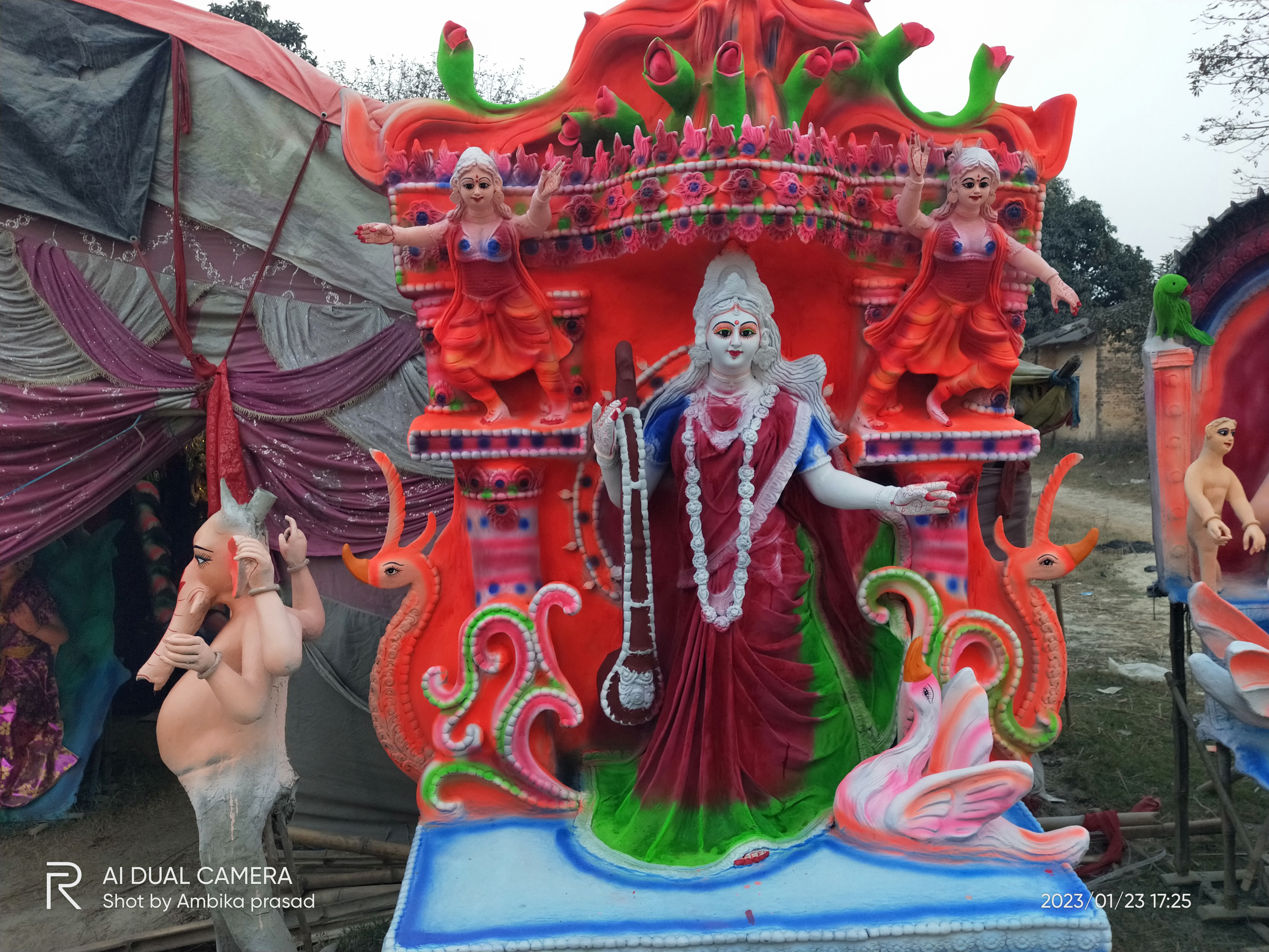 सरस्वती पूजा को लेकर मूर्तिकार ने मुर्ति का दिया गया अंतिम रूप सरस्वती पूजा की तिथि नजदीक आते ही मुर्तिकार ने मुर्ति का अंतिम रूप दिया , मूर्तिकार ने रात दिन एक कर के लगे हुए थे मूर्तिकार माता सरस्वती की प्रतिमाओं को युद्धस्तर पर लगकर अंतिम रूप दे दिया है भक्तो ने मूर्ति की खरीदारी भी करना सुरु कर दिया है , पवन पांडे मूर्तिकार ने कहा कि कड़ाके की ठंड, कुहासा और धूप ना उगने से बनाने में परेशानी हुई है लेकिन फिर भी समय पर सभी भक्तों के लिए मूर्ति का निर्माण ससमय हो गया है पिछले साल की अपेक्षा इस साल सभी मूर्ति भी बिक गई । इस बार प्लास्टर ऑफ पेरिस से भी मूर्ति निर्माण की गई है मूर्तिकार पवन पांडे से सुनते है
