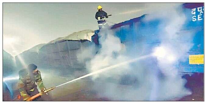 मालगाड़ी की कोयले की चार बोगी में लगी आग, दहशत में बीते तीन घंटे हल्दिया पश्चिम बंगाल पोर्ट से नेपाल के लिए रक्सौल आने वाले कोयला लदे रेल मालगाड़ी के चार बोगी में शुक्रवार शाम आग लगने से स्थानीय रेलवे यार्ड में अफरा तफरी मच गई। यह स्थिति तब उत्पन्न हुई जब आग लगी बोगी रक्सौल रेलवे गुड्स यार्ड के लाइन नंबर आठ में प्रवेश की। मालगाड़ी के बोगी से निकलते भारी धुंआ को देख रेलवे मालगोदाम में तैनात रेल अधिकारियों ने उच्च रेल अधिकारियों को सूचना दी। सूचना पर तत्काल रेल सुरक्षा बल व अन्य रेल अधिकारी घटनास्थल पर पहुंचे। तब आग पर काबू पाने के लिए फायर ब्रिगेड को सूचित कर दो दमकल की गाड़ी बुलाई गई। चार बोगी में लगी आग वाले कोयले को अनलोडिंग कराई गई। कोयला अनलोडिंग के बाद उसे बुझाया गया। फायर ब्रिगेड कर्मियों द्वारा तीन बोगी के कोयला में लगी आग बुझा दिया गया है। जबकि चौथे बोगी की अनलोडिंग करा कर आग बुझाने का प्रयास जारी है। घटना की पुष्टि करते हुए माल अधीक्षक प्रबोध कुमार ने बताया कि उक्त मालगाड़ी में हल्दिया पोर्ट पर कोयला लदाई के बाद उक्त चार बोगी में आग सुलगना आरंभ हो गया था जिसे रास्ते में सीतामढ़ी स्टेशन सहित अन्य स्टेशनों पर बुझाते लाया जा रहा था। घटना में किसी प्रकार की क्षति का विवरण उपलब्ध नहीं हुआ है। उन्होंने बताया कि कोयला अनलोडिंग के बाद यह स्पष्ट होगा कि मालगाड़ी की बोगी को नुकसान हुआ है या नहीं।