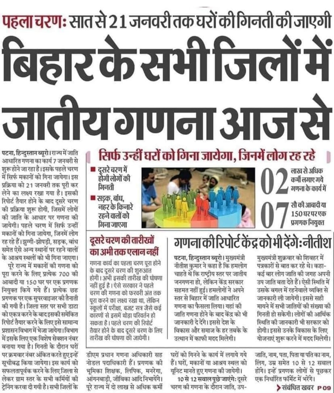 बिहार सरकार तो जातिये जनगड़ना करा रही है लेकिन हर घर मे रोजगार नही दे रही है जो पूंजी वाले है अपना जिवन अछा से गुजर करते है जो गरीब है अछा से जिंदगी नही गुजरता ।बिहार से अदर राज्य मे कम्पनी है की हर लोग के पास पूंजी है क्या गरीब- क्या अमीर, सब अपना जिवन अछा से गुजर करते हैं ।जब तक बिहार सरकार कपंनी स्थापित नही करेगी तब- तक बिहार की स्थति खराब रहेगा ही सरकार सूधार करे तत्काल और कपंनी का स्थापना हर जिला मे दस -दस, करे । कपंनी बैठाए तभी सूधार होगा । हर लोग अपना काम कपंनी मे करेंगे अछा से जिंदगी चलेगी ।
