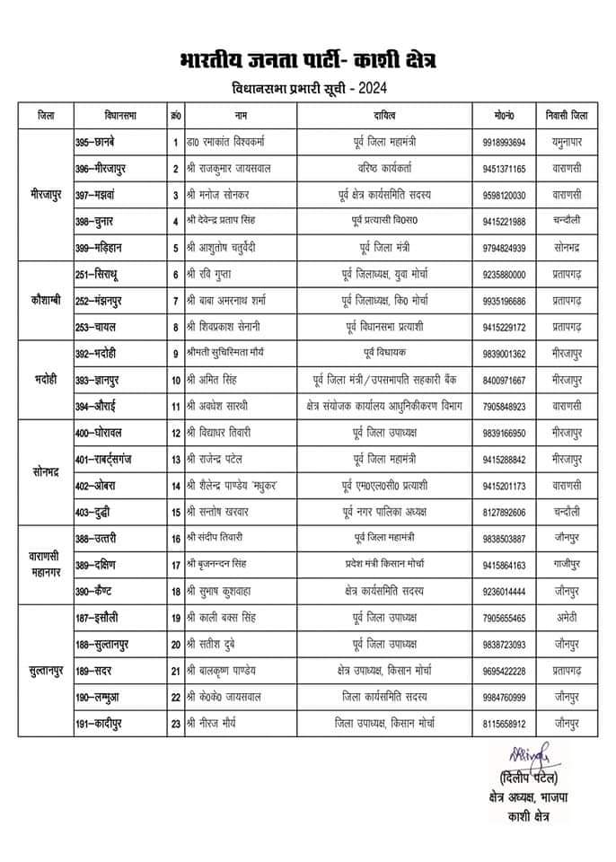 बृजनंदन सिंह को वाराणसी के शहर दक्षिणी (वि.स.)का प्रभारी बनाए जाने से पूरे क्षेत्र में हर्ष का माहौल