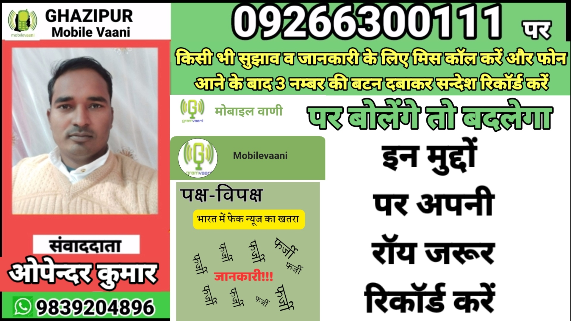 उत्तर प्रदेश राज्य के ग़ाज़ीपुर जिला से उपेन्दर कुमार ने मोबाइल वाणी के माध्यम से बताया कि फेक न्यूज के खतरे से निपटने के लिए एक एप्प विकसित किया जाना चाहिए । जिसमें कस्टमर केयर या अन्य नकली कॉल के लिए एक फिल्टर बनाया गया हो, जिसका उपयोग करते ही आपको नकली कॉल नहीं आये।साथ ही यह भी सुविधा हो की जैसे ही आप फेक आईडी खोलते हैं, चाहे वह यूट्यूब , फेसबुक , वॉट्सऐप , कुछ भी हो एप्प इसे स्कैन कर ले। इस स्कैन प्रणाली का नियंत्रण हर जिले के पुलिस नियंत्रण विभाग में होना चाहिए ताकि वहाँ से यह निरीक्षण किया जा सके कि ऐसा संदेश कौन और कहाँ से भेज रहा है । ताकि फेक न्यूज को रोका जा सके