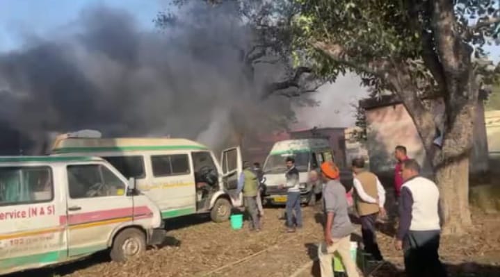 जखनियां गाजीपुर ।मनिहारी सीएचसी केंद्र में खड़ी एंबुलेंस उस वक्त आग लगने से लोगो में हड़कंप मच गया।लोग कुछ समझ पाते इधर उधर भागने लगे।जब तक लोग आग पर पानी फेंक कर काबू पाते तबतक पांच एंबुलेंस में तीन पूरी तरह जलकर राख हो गई।विस्तार पूर्वक जानकारी के लिए क्लिक करें ऑडियो पर और सुनें पूरी खबर।