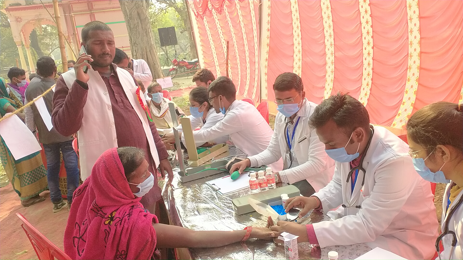 कासिमाबाद: संवेदना होम्योपैथिक क्लिनिक लखनउ के तत्वधान में स्व बालारूप एवम् रमावती देवी की पुण्यतिथि पर रविवार को क्षेत्र के परजीपाह शिवमन्दिर प्रांगण में एक दिवसीय निशुल्क होम्योपैथिक चिकित्सा शिविर का आयोजन किया गया। जिसमे 700 लोगों की स्वास्थ्य की जांच कर उन्हें दवाइयां वितरित की गई। शिविर में कोविड गाइडलाइन का पालन करते हुए किया गया । शिविर में मरीजों की जांच अलग-अलग चिकित्सकों की टीम ने उनके स्वास्थ्य की जांच की और निशुल्क दवाइयां भी वितरित किया। शिविर ने शुगर ब्लड प्रेशर एवं ऑक्सीजन स्तर का निशुल्क जांच हुआ।शिविर में विभिन्न प्रकार की बीमारियों का होम्योपैथिक चिकित्सा द्वारा इलाज किया गया। शिविर में आए हुए लोगों को मास्क सेनेटाइजर वितरण के साथ भंडारे का आयोजन हुआ। चिकित्सकों की टीम में डॉ गौरी शंकर, डॉ रामबचन मौर्या, डॉ बच्चन सिंह यादव ,डॉ नितिन डेविड, डॉ मधुबाला सिंह यादव, वहीं जूनियर टीम डॉ अनु, शिवानी अनुष्का, श्रीकांत हेमंत अमित चौरसिया, सविता पटेल, रिचा यादव मेडिकल कॉलेज की चिकित्सक टीम रहे। कार्यक्रम के आयोजक दिनेश यादव ग्राम प्रधान रहे।सुबास राम ,श्री राम, अतुल श्रीवास्तव, जितेंद्र, हरिकेश आदि ग्रामीण मौके पर मौजूद रहे