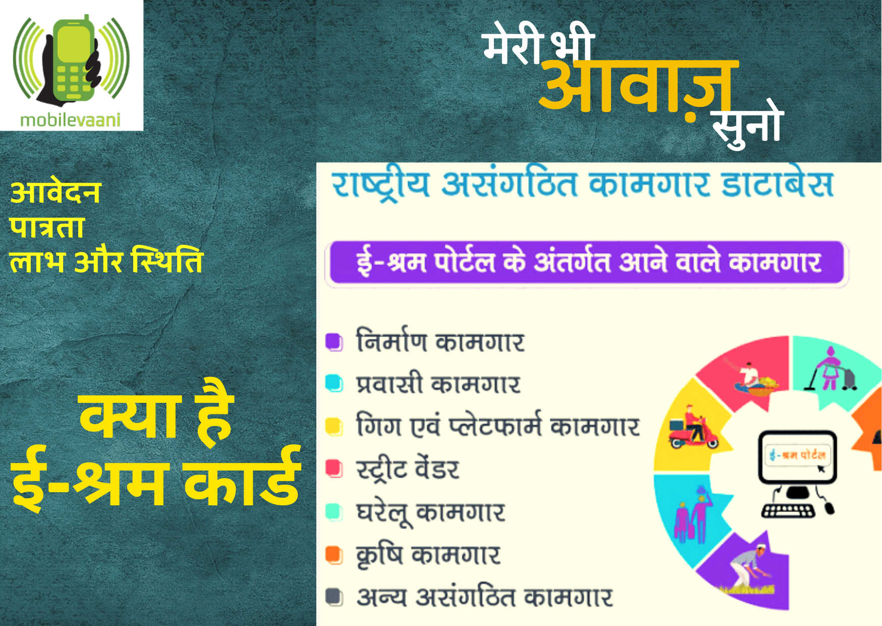 दोस्तों , ई—श्रम कार्ड पूरे देश में मान्य होगा और इससे मजदूर साथियों को दूसरे राज्यों में काम मिलने और सरकारी योजनाओं का लाभ लेने में आसानी होगी. इसलिए आप भी ये कार्ड जरूर बनवा लें. साथ ही अगर आपको ई—श्रम कार्ड बनवाने में कोई भी परेशानी आ रही है तो मोबाइलवाणी आपका सहयोग करेगा. हमारे वॉलिंटियर दिल्ली, एनसीआर समेत और दूसरे राज्यों में भी श्रमिको का ई—श्रम कार्ड बनवाने में मदद कर रहे हैं.