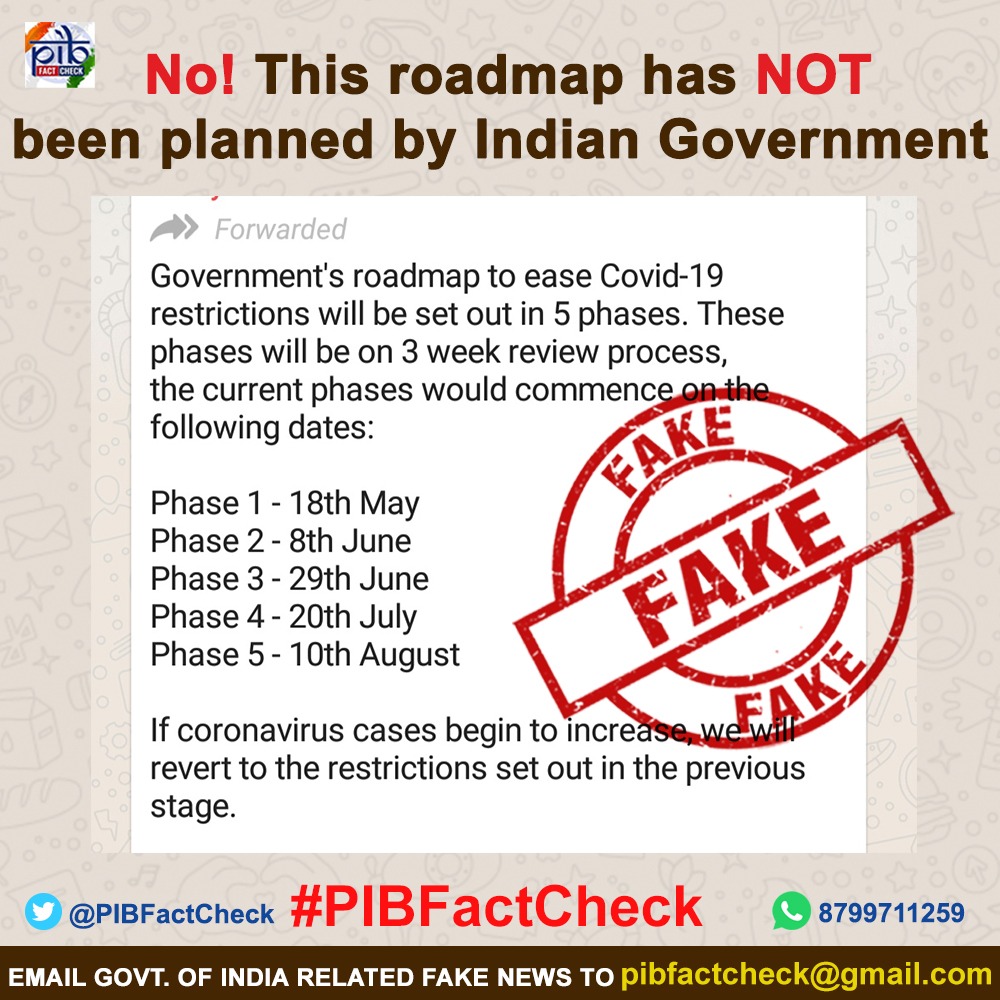 लॉकडाउन 3 खत्म होने वाला है और देश की जनता सरकार का अगला कदम जानने के लिए बेताब है. और इसी बेचैनी का फायदा उठाकर कुछ लोग भ्रामक समाचार फैला रहे हैं. जिसमें दावा किया गया है कि सरकार ने लॉकडाउन खोलने का रोडमैप तैयार कर लिया है. विस्तार पूर्वक जानकारी के लिए क्लिक करें ऑडियो पर और सुनें पूरी खबर।