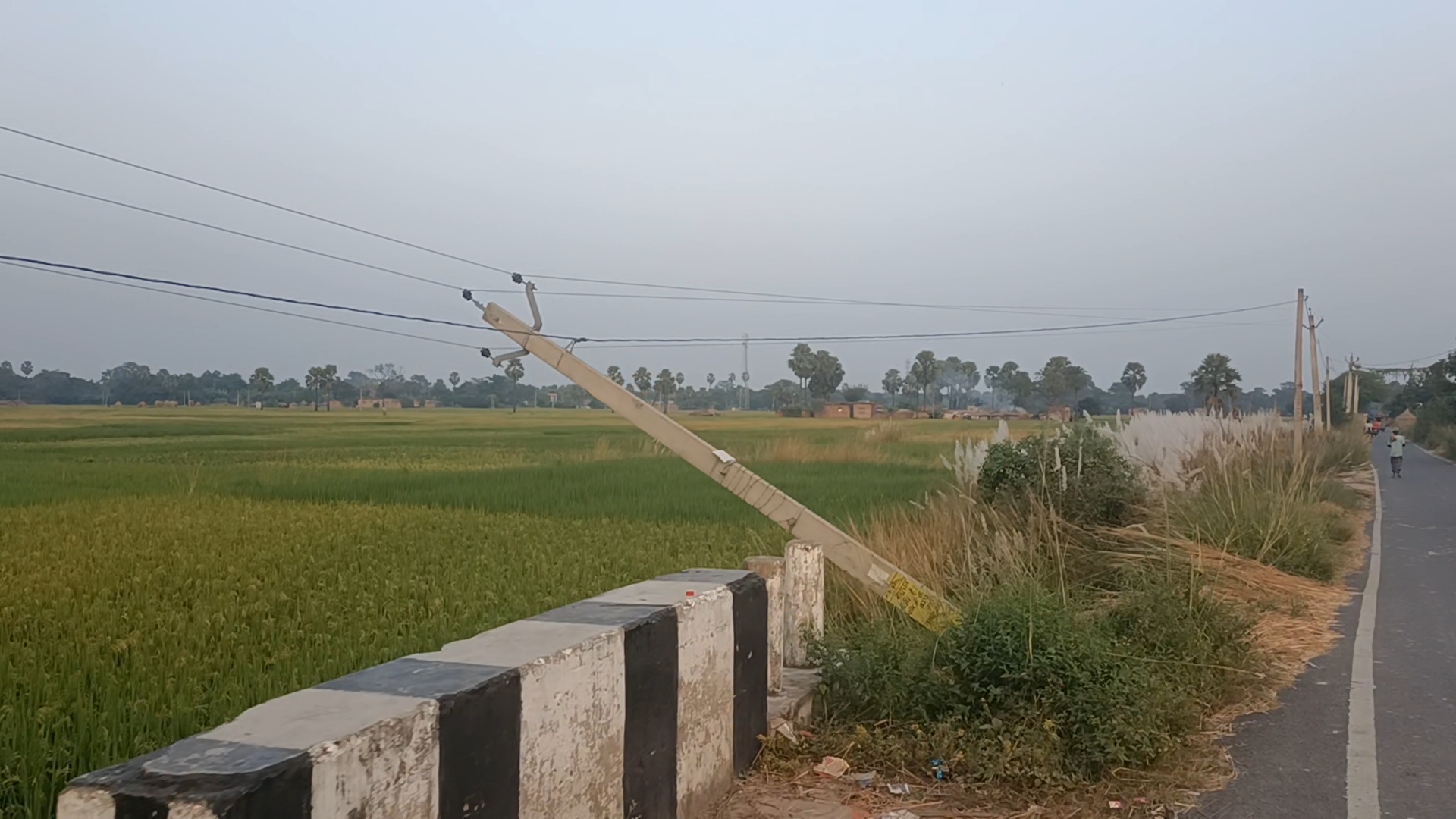 पचलख गांव के तरफ जाने वाली मुख्य सड़क किनारे 11000 का वोल्टेज तार पोल लटका