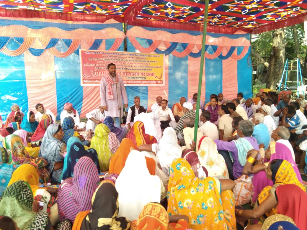 *विभिन्न मांगों को लेकर प्रखण्ड मुख्यालय पर माले ने दिया धरना* *200 यूनिट बिजिली बिल माफ हो-खेग्रामस* *मनरेगा में साल में 200 दिन काम मजदूरों को मिले - माले* हुसैनगंज 3 नवंबर 2022 अखिल भारतीय खेत व ग्रामीण मजदूर सभा व माले के बैनर तले राज्यव्यापी आह्वान के तहत प्रखंड -अंचल कार्यालय पर विभिन्न सवालों को लेकर धरना किया गया। अध्यक्षता खेग्रामस के प्रखण्ड संयोजक पसुराम सिंह ने किया। अपने दस सूत्री मांगो को लेकर हुसैनगंज प्रखंड अंतर्गत पंचायतो में विभिन्न सवालों को लेकर धरना प्रदर्शन के माध्यम से मांग पत्र अंचलाधिकारी एव प्रखण्ड विकास पदाधिकारी मांग पत्र सौपा गया। मुख्य मांगे 1.ग्राम करहनु निवासी राशन कार्डधारियों का राशन ग्राम सिंगारपट्टी डीलर भिरगुनाथ तिवारी के यहां मिलता है, जो 5 किलोमीटर हैं। काफी परेशानी होता है। उक्त डीलर को आदेश देकर वितरण ग्राम करहनु में सभी राशन कार्ड धारियों को राशन वितरण अभिलंब किया जाए। 2.ग्राम करहनु नहर का एन.ओ.सी. लेकर नहर पर सड़क निर्माण कराया जाए ताकि नहर के किनारे बसे लोगों का परिचालन हो सके। 3.ग्राम शाहबाजपुर में नाला पर पुल निर्माण किया जाए ताकि इस पार से उस पार जाकर जीवन यापन कर सके। 4.ग्राम खानपुर खैराटी दलित-पिछड़ों मोहल्ला में सड़क निर्माण कराया जाए। 5.दलित गरीबों के घर पर बुलडोजर चलाना बंद किया जाए,वैकल्पिक व्यवस्था कर भूमिहीनों को जमीन और पक्का मकान दिया जाए जीससे उनका जीवन यापन हो सके। 6.बकाया बिजली बिल माफ किया जाए 200 यूनिट फ्री बिजली दिया जाए। 7.भूख-कुपोषण से जूझते देश के गरीबों को राशन कार्ड के तहत दाल, तेल, और मसाला दिया जाए। 8.विधवा-विकलांग सहित सभी वृद्ध को 3000 रुपये मासिक पेंशन दिया जाए। 9. मनरेगा में प्रति साल 200 दिन काम 600 रुपये दैनिक मजदूरी और कार्यस्थल पर भुगतान कीकि भत्ता दिया जाय। वही सभा को सम्बोधित करते हुए किसान महासभा के प्रखंड अध्यक्ष सफी अहमद ने कहा जररूत है किसानों को समय से डीएपी ,यूरिया, बीज का वितरण किया जाए ताकि किसान समय से बुआई कार्य कर सके । वही धरना को सम्बोधित करते हुए माले प्रखण्ड सचिव जयनाथ यादव ने कहा कि आज देश मे बेरोजगारो को रोजगार देने के बजाय नफरत की राजनीति की जा रही है आसमान छूती महँगाई बढ़ती बेक़री के प्रति मोदी सरकार उदासीन बनी हुई देश के 23 करोड़ लोग भूख और गरीबी से तबाह है लेकिन सरकार धार्मिक उन्माद की राजनीति कर रही हैअडानी अम्बानी मुट्टी भर कारपोरेट को लाखों करोड़ों की लूट देने वाली सरकार गरीबो को योजना को रेबड़िया कहकर उपहास उड़ा रही है छिनने की कोशिश की जा रही है राशन के बदले कैस योजना में बदलने की कोशिश किया जा रहा है गरीबों पर बुलडोजर चला रही है आने वाले समय मे जब जनता का बुलडोजर चलेगा तो सरकार दूर दूर तक दिखाई
