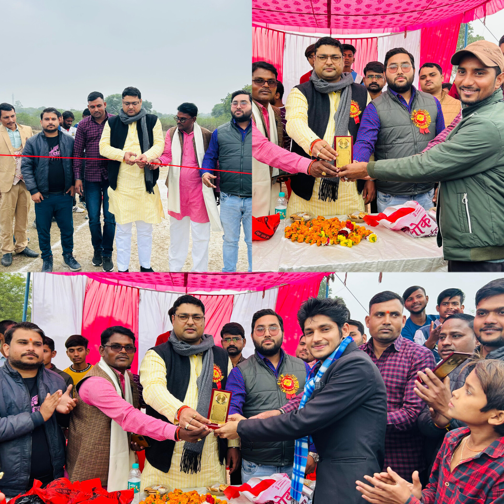 *राम जानकी इलेवन ने जीता टूर्नामेंट फाइनल मैच का मुकाबला* *बांदा* - आपको बता दे कि पूरा मामला ग्राम पंचायत मव ई बुजुर्ग गांव का है जहां पर बुंदेलखंड एक्सप्रेसवे के पास चल रहे टूर्नामेंट मैच का रविवार को फाइनल मुकाबला था टूर्नामेंट मैच में मुख्य अतिथि ओम नारायण विदित, राजन चंदेल व, रामकिशोर सिंह पूर्व प्रधान, राजकरन वर्मा म व ई बुजुर्ग ने मैदान पर सभी खिलाड़ियों से परिचय करने के बाद फीता काटकर मैच का शुभारंभ कराया टूर्नामेंट फाइनल मैच हुआ राम जानकी इलेवन में बुजुर्ग के बीच खेला गया जिसमें पचनेही वरियर्स ने टास जीतकर पहले बल्लेबाजी करते हुए स्कोर निर्धारित 20 ओवर में 130 रन ही बना सकी ज़बाब में उतरी राम-जानकी इलेवन ने 12 ओवर में 131 रनो का लक्ष्य प्राप्त कर मैच का फाइनल मुकाबला जीत लिया, मैन ऑफ द मैच अमित यादव 49 रन प्लेयर ऑफ द सीरीज रोहित यादव 209 रन, बेस्ट बॉलर शुभम प्रजापति बने , मुख्य अतिथियों ने सभी खिलाड़ियों को पुरस्कार देकर सम्मानित किया इस मौके पर राजकरन वर्मा ग्राम प्रधान मवई बुजुर्ग, राम किशोर सिंह , राजन चंदेल,अर्जुन यादव सहित तमाम लोग उपस्थित रहे।