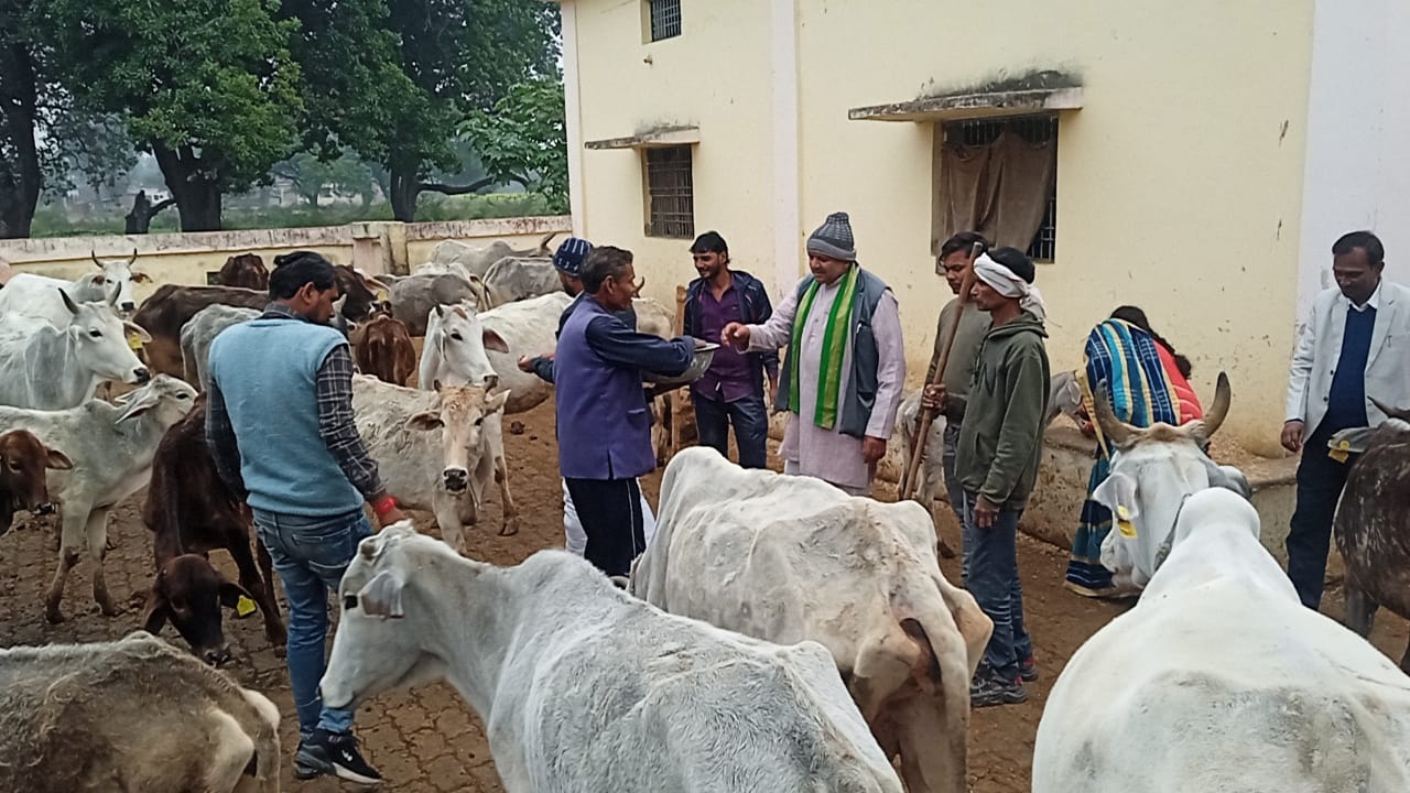 बांदा -नगर पंचायत अध्यक्ष सुधा साहू द्वारा सभी गौ माता को भूसा सहित चुन्नी चौकोर खिलाने का आदेश दिया बांदा -तिंदवारी नगर पंचायत द्वारा संचालित कान्हा पशु आश्रय केंद्रगौशाला में किसान दलित युवा चेतना संघ के जिला अध्यक्ष राजेंद्र द्विवेदी की मौजूदगी में नगर पंचायत अध्यक्ष सुधा साहू एवं चेयरमैन प्रतिनिधि रमेश साहू अधिशासी अधिकारी रामबरन यादव के द्वारा गौ माता के लिए राशन खिलाने की प्रक्रिया अच्छा पशु आहार चूनी चोकर गुड प्रतिदिन ड्रमो में फुलवा कर खिलाने की बहुत ही सराहनीय कार्य नए वर्ष के अवसर पर गोपूजन कर कार्यक्रम आयोजित किया गया जिसमें शंकर नगर सभासद विक्रमादित या कालका प्रसाद सूरज साहू कल्लू विश्वकर्मा अनुराग पटेल एवं अन्य मौजूद रहे