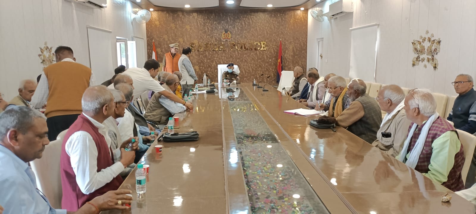 अपर पुलिस अधीक्षक बांदा द्वारा पुलिस लाइन सभागार में पुलिस पेंशनरों के साथ की गई मीटिंग । पुलिस पेंशनर्स की समस्याएं सुन उनके निस्तारण हेतु संबंधित को दिए गए निर्देश ।* विवरण- आज दिनांक 08.12.2023 को अपर पुलिस अधीक्षक बांदा श्री लक्ष्मी निवास मित्र द्वारा पुलिस लाइन सभागार में पुलिस पेंशनरों के साथ मीटिंग की गई । इस दौरान पुलिस पेंशनर्स की समस्याओं को सुनकर उनके निस्तारण हेतु संबंधित को निर्देशित किया गया