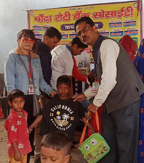 बादा -आज दिनाँक 26/11/2023 को संविधान दिवस के मौके पर बाँदा रोटी बैंक सोसाइटी के संरक्षक शेख़ सादी ज़मा साहब के संरक्षण में रिज़वान अली अध्यक्ष बाँदा रोटी बैंक सोसाइटी की अध्यक्षता में राहुल अवस्थी शाखा प्रमुख क्योटरा जैविक किसान के नेतृत्व में ग्राम प्रधान खैराडा चंद्रोदय ग्राम खैराडा की मौजूदगी में ग्रामखैराडा के ग्रामीणों को कपड़े,किताबें, जूते चप्पल आदि का वितरण किया गया साथ ही रिया खान महिला सदस्य बाँदा रोटी बैंक के द्वारा ग्रामीणों को स्वच्छता के प्रति जागरूक किया गया।इरफ़ान खान कोषाध्यक्ष बाँदा रोटी बैंक के द्वारा संविधान दिवस के मौके पर ग्रामीणों को उनके कानूनी अधिकारों के प्रति जागरूक किया।मोहम्मद शमीम कार्यालय प्रभारी बाँदा रोटी बैंक के द्वारा ग्रामीणों को निर्वाचन संबंधी जानकारी दी।उक्त सामान पाकर ग्रामीणों के चेहरे पर खुशी दिखाई दी।ग्रामीणों ने बाँदा रोटी बैंक सोसाइटी के पदाधिकारियों और सदस्यों को आशीर्वाद दिया।इस कपड़ा वितरण कार्यक्रम में सभी पदाधिकारियों और सदस्यों तथा शहर के ज़िम्मेदार जागरूक लोगों ने ग्रामीणों का सहयोग किया।मोहम्मद शमीम कार्यालय प्रभारी,इरफ़ान खान कोषाध्यक्ष,मोहम्मद सलीम शाखा प्रमुख बलखंडी नाका,इरफ़ान खान चाँद शाखा प्रमुख खाईंपार, अब्दुल शफ़ीक़ कल्लू,रिया खान उमंग सिंह सदस्य आदि।