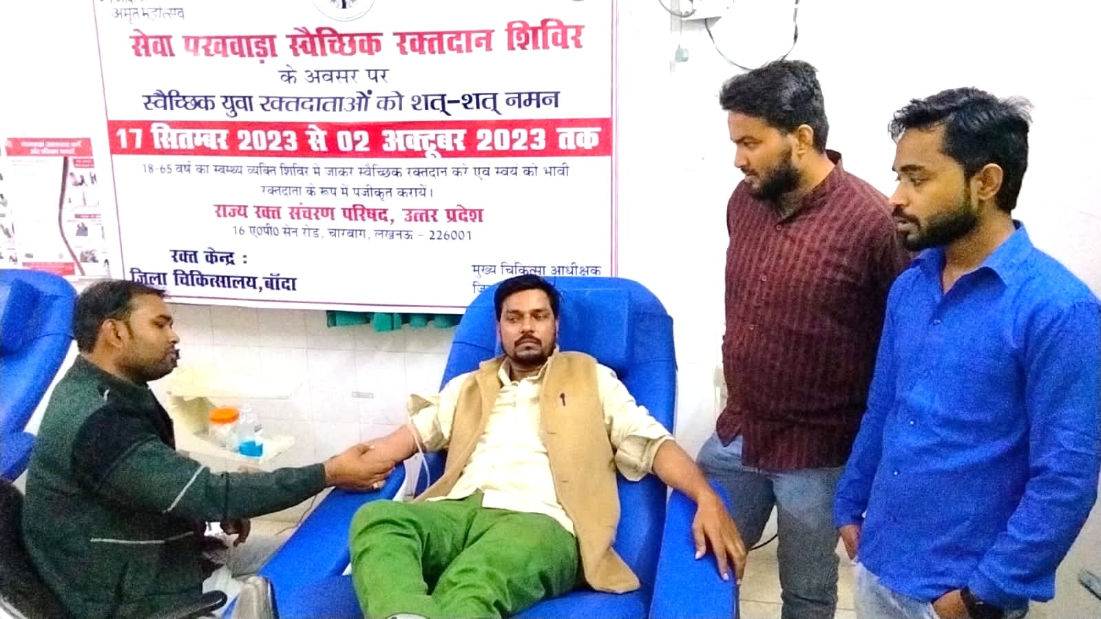 जावेद खान ने 100 साल के बुजुर्ग की खून देकर बचाई जान बांदा-ये बात हम सभी जानते हैं कि खून किसी खेत मे नहीं उगाया जा सकता, और ना ही किसी फैक्ट्री में बनाया जा सकता है, जब भी किसी मरीज को खून की जरूरत पड़ती है तो किसी न किसी इंसान को अपने बदन का खून देना पड़ता है और इस काम मे अक्सर घर के ही लोग पीछे हट जाते है, कई बार परिजनों का ब्लड ग्रुप मैच नहीं करता और ब्लड बैंक में भी उस ग्रुप का खून नहीं होता तब उस मरीज की जान बचाना मुश्किल हो जाता है । ऐसी तमाम मुश्किलों को आसान करने के लिए बांदा में सैकड़ों युवाओं ने संगठन बना कर लोगों की जान बचाने का बीड़ा उठाया है ये युवा पिछले कई वर्षों से रक्तदान करके अब तक हज़ारों मरीजों की जान बचा चुके हैं। ऐसा ही एक मामला फिर सामने आया है बांदा के गिरवाँ थानांतर्गत शेखनपुरवा निवासी 100 साल के बुजुर्ग कल्लू पिछले एक महीने से बीमार चल रहे थे, पिछले दिनों उनको खून की उल्टियाँ हुई तब परिजिन ने उन्हें रफीक नर्सिंग होम में भर्ती कराया डाक्टर रफीक ने कल्लू को खून चढ़वाने की सलाह दी कल्लू का खून ए निगेटिव था और ए निगेटिव खून कल्लू के परिवार में किसी का नहीं था ब्लड बैंक में भी ए निगेटिव खून नहीं था तब बांदा में संचालित सेवर्स ऑफ लाइफ ब्लड डोनर ग्रुप से मदद मांगी गई सेवर्स ऑफ लाइफ के अध्यक्ष सलमान खान ने द हेल्पिंग माइन काइंड कोविद नाइन्टीन (सामाजिक संगठन) के उपाध्यक्ष जवेद खान से रक्तदान करने की अपील की जावेद खान का ब्लड ग्रुप ए निगेटिव था तो जावेद खान कल्लू के लिए रक्तदान करने को तैयार हो गए रविवार की रात जावेद खान ने रक्तदान किया और सोमवार की सुबह कल्लू को खून चढ़ाया गया इस तरह जावेद खान ने 100 साल के बुर्जुग कल्लू के लिए रक्तदान किया और कल्लू की जान बच गई । जावेद खान के द्वारा दिये रक्त के लिए कल्लू के परिजनों के जवेद खान का आभार्य व्यक्त किया ।