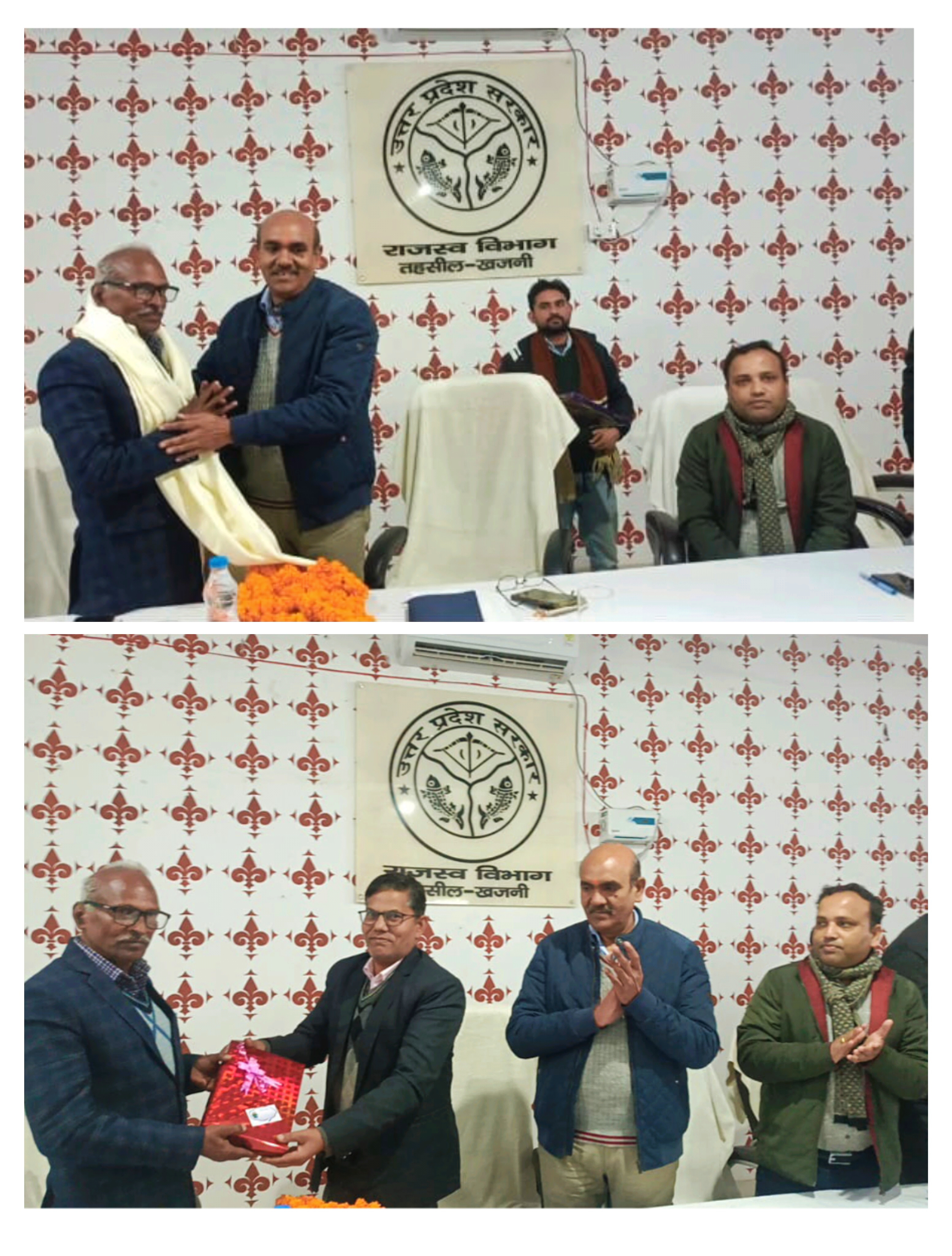 खजनी गोरखपुर।।उपजिलाधिकारी राजू कुमार और तहसील के सभी अधिवक्ताओं, अधिकारियों और कर्मचारियों के द्वारा सेवानिवृत नायब तहसीलदार अशोक कुमार को भावभीनी विदाई दी गई। तहसील में आयोजित विदाई समारोह में अपने संबोधन में एसडीएम ने कहा कि नायब तहसीलदार अशोक कुमार ने अपने उत्तरदायित्वों का बखूबी निर्वहन किया उन्होंने अपने सेवाकाल में सभी अधिवक्ताओं के दिलों में जगह बनाकर राजस्व विभाग के सभी कार्यों को कुशलतापूर्वक संपन्न किया। विगत लगभग 40 वर्षों से राजस्व विभाग में उनका लंबा कार्यकाल रहा। इस दौरान उन्होंने अपने पद और गरिमा के अनुरूप नीतीगत तरीके से सभी कार्यों को संपादित किया। उन्होंने विभिन्न पदों पर रहते हुए अमूल्य सेवाएं दी हैं। विदाई समारोह को संबोधित करते हुए अन्य वक्ताओं ने भी नायब तहसीलदार की कार्य शैली की सराहना करते हुए उनके सुखमय जीवन की कामना की। फूल माला और अंगवस्त्र तथा उपहार देकर अपने प्रिय अधिकारी की विदाई करते हुए सभी के चेहरे पर दर्द छलक पड़ा। इस दौरान अपने संबोधन में नायब तहसीलदार ने सभी सहकर्मियों के सहयोग की सराहना करते हुए सेवा काल के कई अविस्मरणीय संस्मरणों की जानकारी दी। विदाई समारोह में न्यायिक उप जिलाधिकारी,तहसीलदार दीपक कुमार गुप्ता,न्यायिक तहसीलदार एवं नायब तहसीलदार बेलघाट हरीश यादव, नायब तहसीलदार खजनी राम सूरज प्रसाद,रजिस्ट्रार कानूनगो उमेश दुबे,राजस्व निरीक्षक रामरेखा प्रसाद एवं अधिवक्ता नन्हे लाल यादव, पन्नेलाल यादव,पंडित राम कृष्ण द्विवेदी,दिनेश कुमार सहित तहसील के सभी अधिवक्ताओं अधिकारियों और कर्मचारियों ने अपने चहेते अधिकारी को भावपूर्ण विदाई दी।