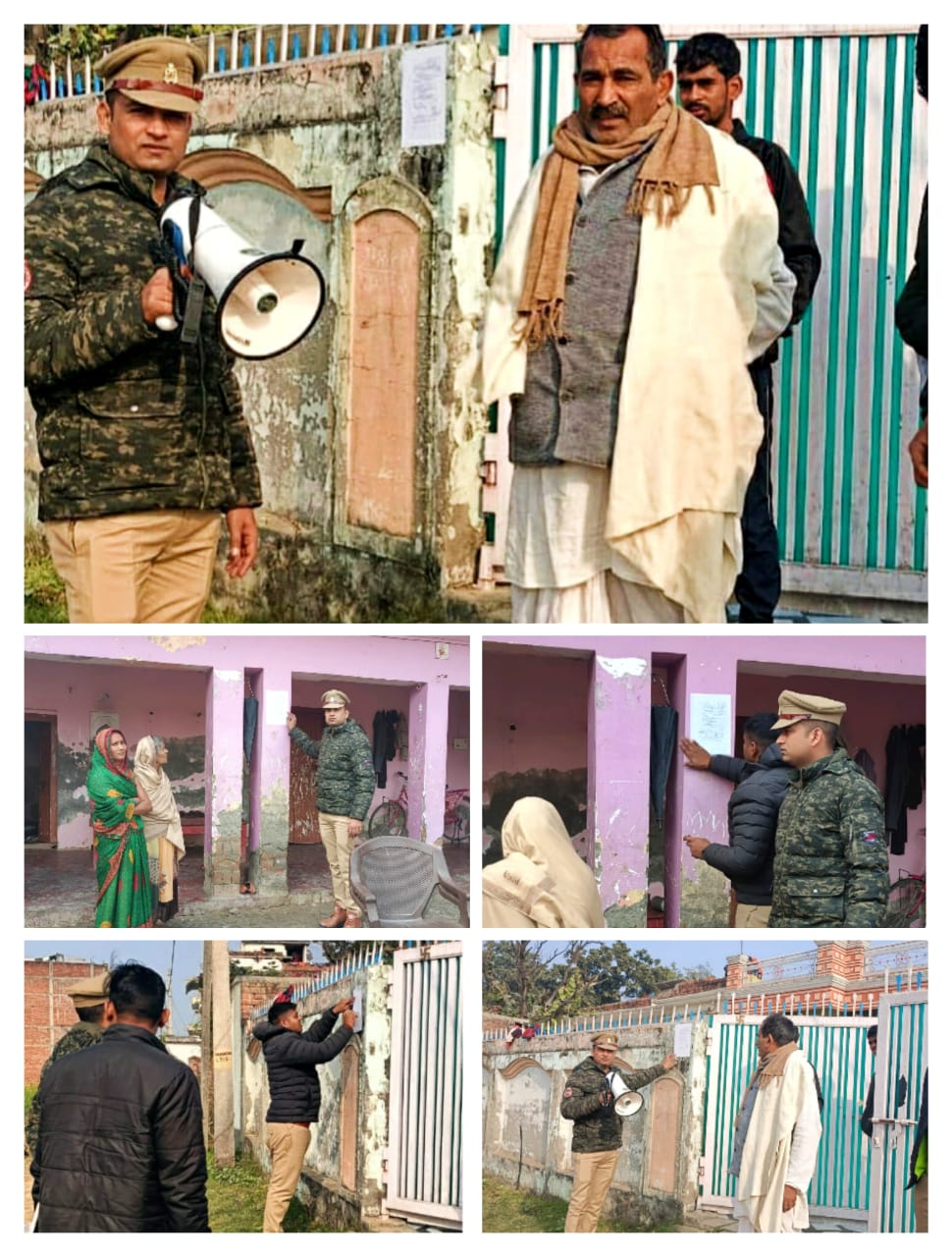 गणतंत्र दिवस पर खजनी के 2 वारंटी अभियुक्तों के खिलाफ डुग्गी मुनादी की गई। खजनी गोरखपुर।। न्यायालय के निर्देश पर आज राजघाट थाने के धारा 306 के वारंटी अभियुक्त रामनेवास चौरसिया के पुत्र पप्पू कुमार निवासी ग्राम कंदराईं थाना खजनी तथा धारा 323,504,506,308 के वारंटी अभियुक्त स्वर्गीय राजदेव यादव के पुत्र गणेश यादव निवासी ग्राम तालनवर टोला हरहरवा थाना खजनी के खिलाफ धारा 82 के तहत महुआडाबर चौकी प्रभारी दारोगा शैलेन्द्र प्रताप सिंह के नेतृत्व में थाने की पुलिस टीम के द्वारा डुग्गी मुनादी कराई गई। अभियुक्तों को माननीय न्यायालय के आदेश का अनुपालन करने की चेतावनी देते हुए उनके घरों पर नोटिस चस्पा की गई है। उक्त जानकारी थानाध्यक्ष खजनी गौरव कन्नौजिया के द्वारा दी गई।