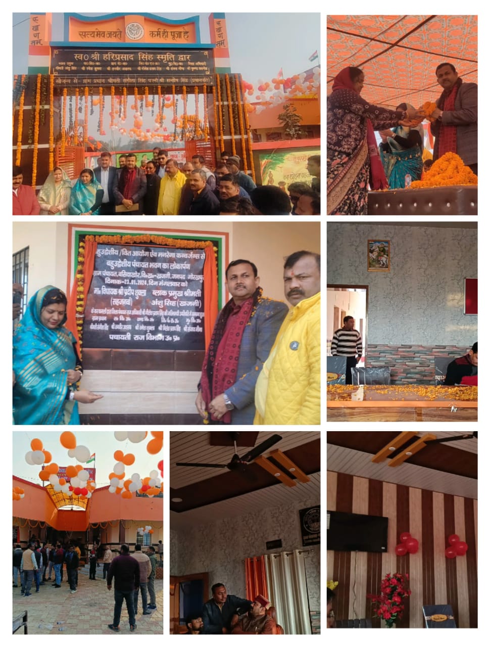 विधायक प्रदीप शुक्ला ने फीता काट कर किया बहुउद्देशीय पंचायत भवन का उद्घाटन। खजनी गोरखपुर।। ब्लॉक क्षेत्र के बसियाखोर ग्रामसभा में नव निर्मित अत्याधुनिक बहुउद्देशीय ग्राम पंचायत सचिवालय का फीता काट कर उद्घाटन किया। पूर्व निर्धारित कार्यक्रम के अनुसार आज अपराह्न बसियाखोर गांव में मुख्य अतिथि के रूप में पहुंचे क्षेत्रीय विधायक प्रदीप शुक्ला ने वैदिक मंत्रों से पूजन के बाद फीता काट कर गांव में लगभग 35 लाख रुपए की लागत से 5 हजार वर्ग फुट क्षेत्र में बने सुसज्जित बहुउद्देशीय ग्राम पंचायत सचिवालय भवन का लोकार्पण किया। बहुउद्देशीय पंचायत भवन में सभी अधिकारियों के लिए कुल 8 अत्याधुनिक सुसज्जित कक्ष और एक मीटिंग हाॅल काॅरीडोर,लेक व्यू, और महिलाओं व पुरुषों के लिए अलग शौचालय का बनाए गए हैं। बसियाखोर गांव में खजनी ब्लॉक क्षेत्र के गांवों में सबसे अधिक सुसज्जित और आकर्षक ढंग से बनाए गए पंचायत भवन तथा बगल में बने अमृत सरोवर का निरीक्षण करते हुए विधायक ने निर्माण कार्य की तारीफ करते हुए बेहतरीन निर्माण कराने के लिए ग्रामप्रधान सचिव और बीडीओ को बधाई दी। अपने संबोधन में उन्होंने कहा कि सीएम योगी आदित्यनाथ के नेतृत्व में सभी गांवों का चातुर्दिक विकास हो रहा है। गांव के सचिवालय में सभी ग्रामवासियों को एक ही छत के नीचे सारी सुविधाएं आसानी से मिल सकेंगी। इस अवसर पर विशिष्ट अतिथि के रूप में ब्लॉक प्रमुख अंशु सिंह भाजपा उनवल मंडल अध्यक्ष रामप्रकाश चौरसिया,खजनी मंडल अध्यक्ष धरणीधर राम त्रिपाठी मौजूद रहे। संचालन अंशुमाली धर भक्ति द्विवेदी ने किया। आयोजन में ग्रामप्रधान संगीता सिंह, ग्रामप्रधान प्रतिनिधि संतोष सिंह सचिव तनवीर अशरफ अंसारी,पंचायत सहायक सावित्री रोजगार सेवक प्रियंका सिंह,रायबहादुर सिंह, राजकुमार,ब्रह्मा सिंह,हरिश्चंद्र सिंह उमेश,बालकेश मिश्रा,आदर्श सिंह, रूद्र प्रताप सिंह,सत्येंद्र बहादुर सिंह,अर्जुन जायसवाल,सोनू पांडेय,संतोष तिवारी,रौशन सिंह,रामपाल,चैतन्य तिवारी सहित दर्जनों ग्रामप्रधान ब्लाॅक के अधिकारी कर्मचारी स्थानीय गणमान्य लोग और ग्रामवासी उपस्थित रहे।