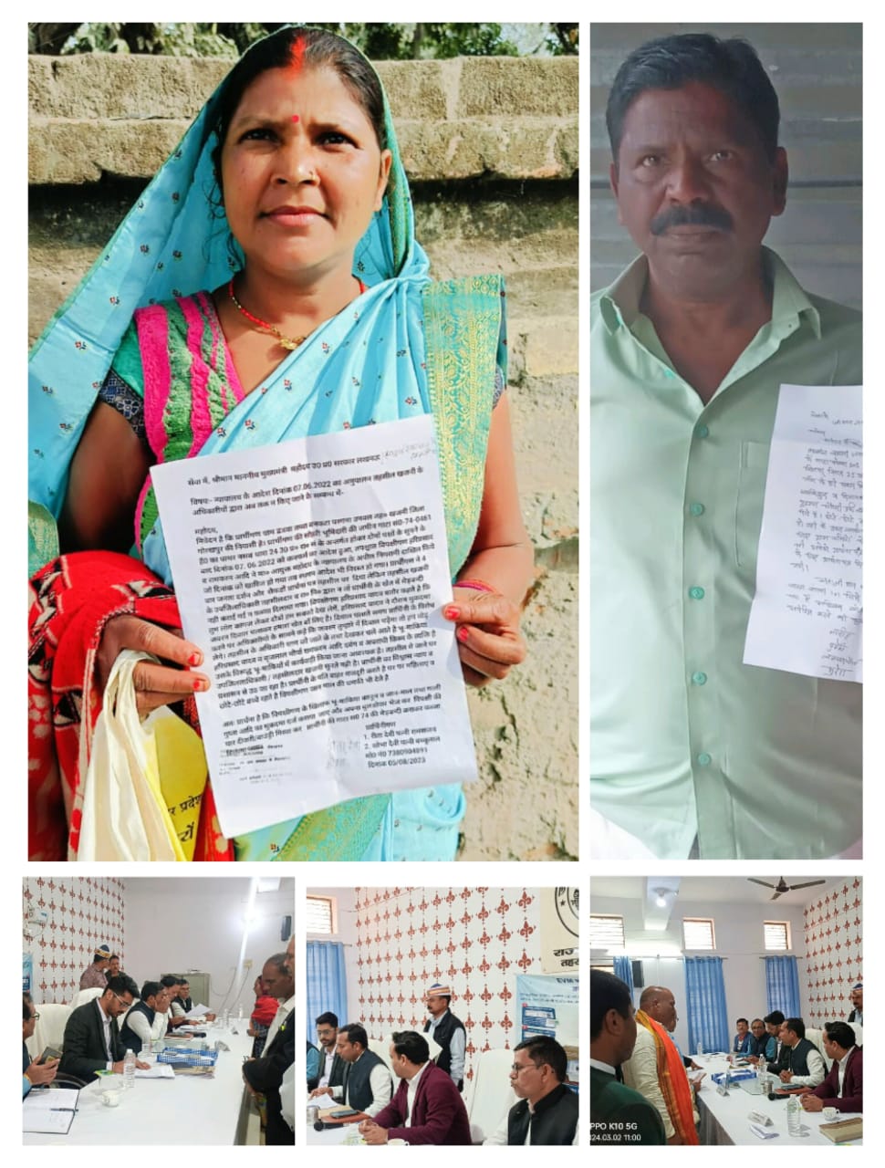 तहसील समाधान दिवस में पीड़ितों ने लगाई न्याय की गुहार दर्जनों बार फरियाद के बाद भी नहीं हुआ समाधान,पेश हुए 54 फरियादी। खजनी गोरखपुर।। तहसील मुख्यालय में आयोजित मार्च महीने के पहले समाधान दिवस की अध्यक्षता कर रहे जिले के मुख्य भू-राजस्व अधिकारी (सीआरओ) सुनील कुमार गौंड़ दिवस प्रभारी उप जिलाधिकारी शिवम सिंह के समक्ष कुल 54 फरियादी अपनी समस्याएं लेकर पेश हुए और अधिकारियों से न्याय की गुहार लगाई। खड़ौहां गांव के निवासी नरसिंह, दुर्गेश,लालचंद मौर्या,सुरेश आदि ग्रामवासियों ने बताया कि गांव में बने 25 वर्ष पुराने खड़जा मार्ग को गांव के ही कुछ दबंग लोगों के द्वारा उखाड़ कर फेंक दिया गया, रास्ते से छोटे बच्चे स्कूल नहीं जा पाते हैं। एसडीएम ने तहसीलदार को मामले में टीम भेज कर जांच और समाधान कराने का आदेश दिया। वहीं सर्बसीं गांव के निवासी स्वर्गीय मुन्नी लाल सिंह के पुत्र विजय बहादुर सिंह ने प्रार्थना पत्र देकर बताया कि माता पिता की मौत के बाद वरासत कराने के लिए तहसील के चक्कर लगा रहे हैं, और अब तक 12 बार फरियाद कर चुके हैं। गंभीर शिकायत सुनते ही न्यायिक मजिस्ट्रेट एवं तहसीलदार दीपक कुमार गुप्ता हैरत में पड़ गए उन्होंने तत्काल राजस्व निरीक्षक को कार्रवाई के निर्देश दिए। इसी प्रकार सक्षम न्यायालय के स्पष्ट आदेश और मुख्यमंत्री जनता दरबार के निर्देश के बाद भी अपनी लगभग 12 डिसमिल जमीन पर कब्जा नहीं कर पा रहीं डंड़वां गांव की निवासी रीता देवी और शोभा ने बताया कि दर्जनों बार प्रार्थना पत्र देकर थक चुकी हैं। अधिकारी मौके पर जांच के लिए जाते हैं,और बैरंग लौट कर वापस चले जाते हैं। जमीन की 13 बार पैमाईश होने के बाद भी उन्हें अपने हक हिस्से पर कब्जा दिलाने की कार्रवाई नहीं हो रही है। जमीन पर काबिज दबंग उन्हें जान माल की धमकी देते हुए कहते हैं कि जहां भी जाना हो जाओ कुछ नहीं होगा। इस दौरान कुल 54 फरियादी अपनी समस्याएं लेकर पहुंचे किंतु किसी भी मामले का मौके पर समाधान नहीं हो सका। मौके पर न्यायिक मजिस्ट्रेट/तहसीलदार दीपक कुमार गुप्ता,नायब तहसीलदार राम सूरज प्रसाद, राकेश कुमार शुक्ला,हरीश यादव तथा अन्य विभागों के अधिकारी कर्मचारी मौजूद रहे।