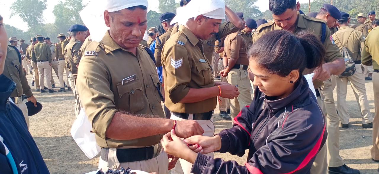 चुनाव ड्यूटी के लिए बैतूल आई फोर्स त्योहार मनाकर हुई गदगद बैतूल सांस्कृतिक सेवा समिति के राष्ट्र रक्षा मिशन को मिली सराहना बैतूल। जिले की सामाजिक एवं सांस्कृतिक क्षेत्र में अग्रणी बैतूल सांस्कृतिक सेवा समिति की सरहदी बहनों ने आज जिले में विभिन्न प्र्रदेशों से आए पुलिस बल एवं फोर्स के साथ भाईदूज का पर्व मनाया। समिति द्वारा एसपी सिद्धार्थ चौधरी से अनुमति प्राप्त कर इस कार्यक्रम का आयोजन किया। बैतूल सांस्कृतिक सेवा समिति कारगिल विजय के बाद से ही देश के सैनिकों की हौसलअफजाई के लिए कार्य कर रही है। जिले में भाईदूज के पर्व पर विभिन्न प्रांतों विधान सभा चुनाव के लिए ड्यूटी पर आए पुलिस बल एवं जवानों का माथा सूना न रहे इसलिए समिति के 20 सदस्यीय दल ने करीब दो हजार जवानों को दूज का टीका लगाकर शुभकामनाएं दी और दीर्घायु एवं स्वस्थ जीवन के लिए कामना की। जवानों के साथ भाईदूज मनाने की अनुमति प्रदान करने के लिए समिति ने एसपी सिद्धार्थ चौधरी का आभार माना। मात्र एक घंटे में हजारों जवानों को बांधी मौली लगाया तिलक समिति अध्यक्ष गौरी बालापुरे पदम ने बताया कि अनुमति मिलने के बाद समिति के दल ने भाई दूज मनाने की तैयारियां की। सुबह 9 बजे समिति के पदाधिकारी एवं सदस्य पुलिस ग्राउंड पहुंचे यहां आरआई दिनेश मर्सकोले के निर्देशन में भाईदूज मनाया गया। श्रीमती पदम ने बताया कि यह दूसरा मौका है जब जिले में चुनाव ड्यूटी पर आए बल के साथ भाईदूज का पर्व मनाया गया है। समिति की स्थापना का यह रजत उत्सव वर्ष है,ऐसे में भाई-बहन प्रिय पर्व भाईदूज सेना एवं पुलिस के साथ मनाने का अवसर मिलना उनकी पूरी टीम के लिए गर्व का अवसर है। समिति के पदाधिकारी भारत पदम, ईश्वर सोनी, शिवानी मालवीय, वंश कुमार पदम, सदस्य प्रज्ञा झगेकर, मेहर प्रभा परमार, आकृति परमार, संध्या पवार, कावेरी झगेकर, धडक़न शाह, निशा, करिश्मा गायकवाड़, कीर्ति, सलोनी, प्रिया, सुहानी, विष्णु शाह, विजीत लिखितकर, श्याम, पुनीत निर्मले, संध्या पाल, नेहा राम, खुशी धाड़से ने महज एक घंटे में दो हजार पुलिस एवं सेना बल को तिलक लगाकर, मौली धागा बांधा।
