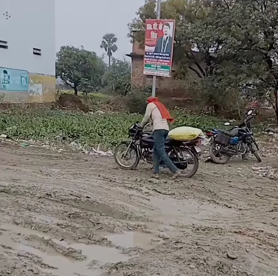 हल्की बारिश ने खोली है एकईल और ईस्सारपीथापट्टी के बीच मार्ग निर्माण की कलाई। फैले कीचड़ से आवागमन हुआ कठिन।