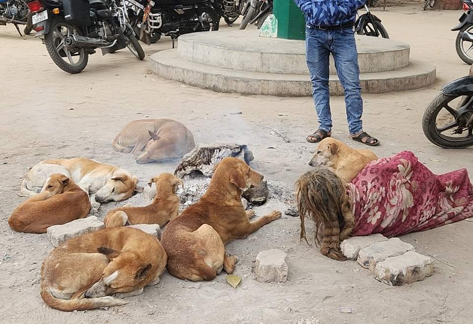 बलिया में ठंड का कहर जानवर भी अलाव पर हुए निर्भर