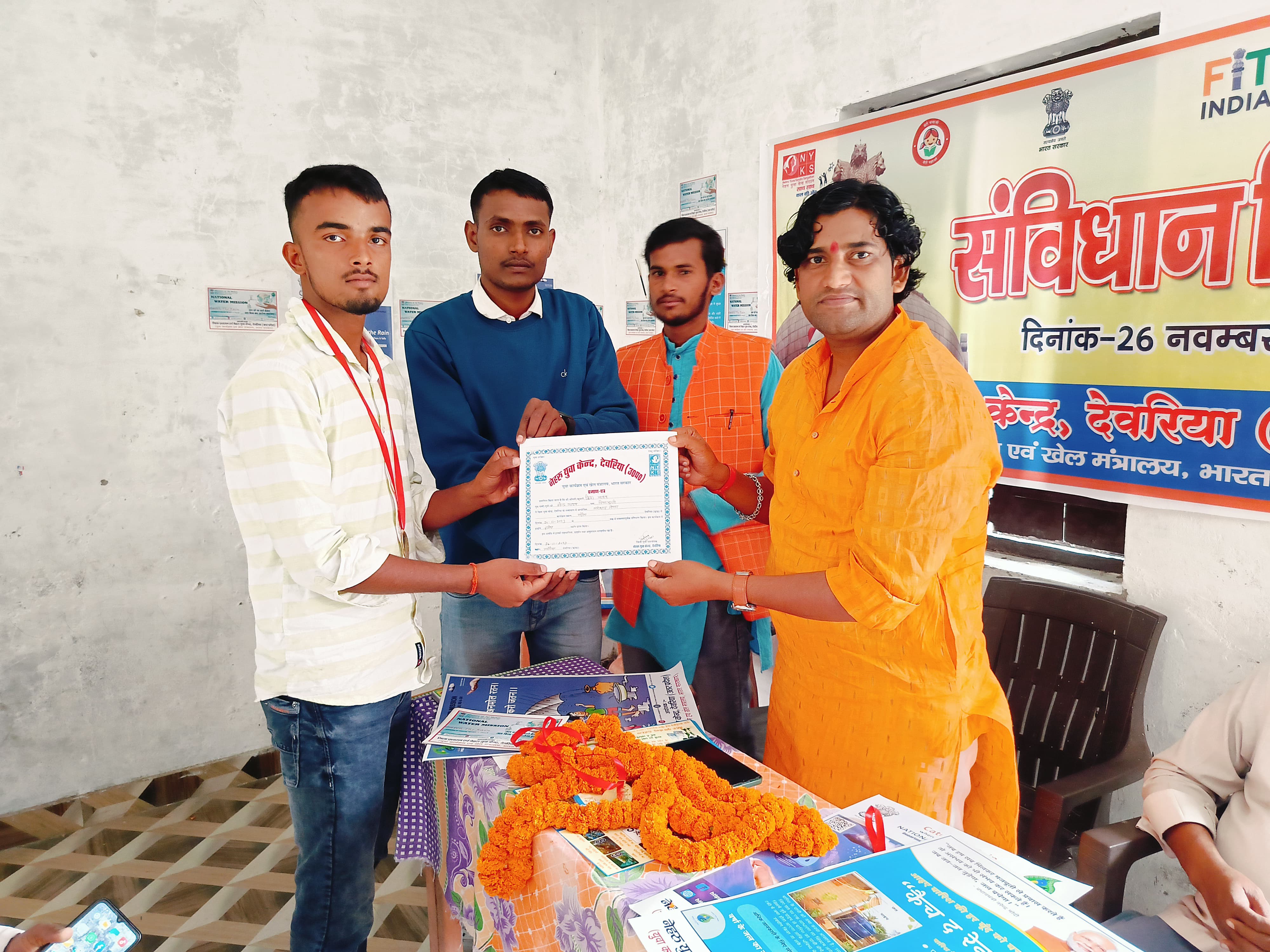 नेहरु युवा केंद्र देवरिया के युवा कार्यक्रम एवम् खेल मंत्रालय भारत सरकार के तत्वाधान में संविधान दिवस के उपलक्ष में भाषा प्रतियोगिता का आयोजन किया गया । इस कार्यक्रम में भारतीय संविधान पर चर्चा किया गया। जिसमें प्रथम स्थान शिवम् मिश्रा (पिपरा), द्वितीय स्थान प्रदीप कुमार रंजन ( चकरा), तृतीय स्थान कृष यादव रहे l इस कार्यक्रम के मुख्य अतिथि ऋषि कुमार रानू,विशिष्ठ अतिथि शिवम पांडे और आयोजक वालेंटियर राहुल मल्ल रहे। इस दौरान ब्रह्मानंद गिरी, सोनु यादव, जितेंद्र यादव, दीपक प्रजापति अन्य लोग उपस्थित रहे।