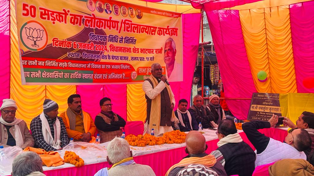 भाटपार रानी,देवरिया। स्थानीय तहसील क्षेत्र के बंगरा बाजार में क्षेत्रीय भाजपा विधायक सभाकुवंर कुशवाहा ने विधायक निधि से बनने वाले 50 सड़कों का शिलान्यास एवं लोकार्पण का कार्य वैदिक मंत्रोचार के बीच किया। कार्यक्रम को संबोधित करते हुए बतौर मुख्य अतिथि विधायक ने कहा कि आप लोगों ने जो मुझे अपना स्नेह और प्रेम दिया है उसे मैं क्षेत्र के विकास के रूप में ब्याज सहित वापस करने का कार्य करूंगा। उन्होंने कहा कि भाटपार रानी को एक मॉडल विधानसभा के रूप में उत्तर प्रदेश के मानचित्र में स्थापित करने का मेरा सपना है जिसे आप लोगों के आशीर्वाद से पूरा करने के लिए निरंतर प्रयास कर रहा हूं। उत्तर प्रदेश के यशस्वी मुख्यमंत्री योगी आदित्यनाथ के नेतृत्व में उत्तर प्रदेश में विकास के नए मानदंड स्थापित हो रहे हैं। समाज के अंतिम व्यक्ति को विकास की मुख्य धारा से जोड़ने के लिए सरकार के द्वारा रोज नए-नए योजनाएं बनाई जा रही हैं। कार्यक्रम को संबोधित करते हुए भाजपा नेता राघवेंद्र वीर विक्रम सिंह ने कहा की प्रधानमंत्री आवास योजना के अंतर्गत गरीबों को पक्का छत मुहैया कराने का कार्य कर सरकार के द्वारा किया जा रहा है। मोदी एवं योगी की सरकार ने गोरखपुर में एम्स एवं देवरिया में मेडिकल कार्य कॉलेज स्थापित करने का ऐतिहासिक कार्य की है। कार्यक्रम को प्रमुख रूप से सच्चिदानंद शाही,सुरेश तिवारी, लक्ष्मण सिंह कुशवाहा, शिवलोचन सिंह कुशवाहा, विशंभर पांडेय, राजेश तिवारी ने संबोधित किया। कार्यक्रम की अध्यक्षता मंडल अध्यक्ष संजय पटेल एवं संचालन भाजपा नेता संतोष पटेल ने किया। कार्यक्रम में प्रमुख रूप से दुर्गा गुप्ता, ऋतुराज गुप्ता, अनिरुद्ध कुशवाहा, हरिकेश कुशवाहा, संजय सिंह सैथवार, राघवेंद्र सिंह, राहुल सिंह, प्रवीण कुशवाहा, संजय गुप्ता, लालबाबू यादव, लालजी कुशवाहा, राजेश गुप्ता, चंदन मद्धेशिया, पप्पू यादव, राम आशीष कुशवाहा, योगेंद्र कुशवाहा, राहुल सिंह, पवन कुशवाहा, नागेंद्र पासवान, विनोद कुशवाहा, अशोक वर्मा, राजेश कुशवाहा मौर्यवंशी सहित ग्रामवासी उपस्थित रहे।