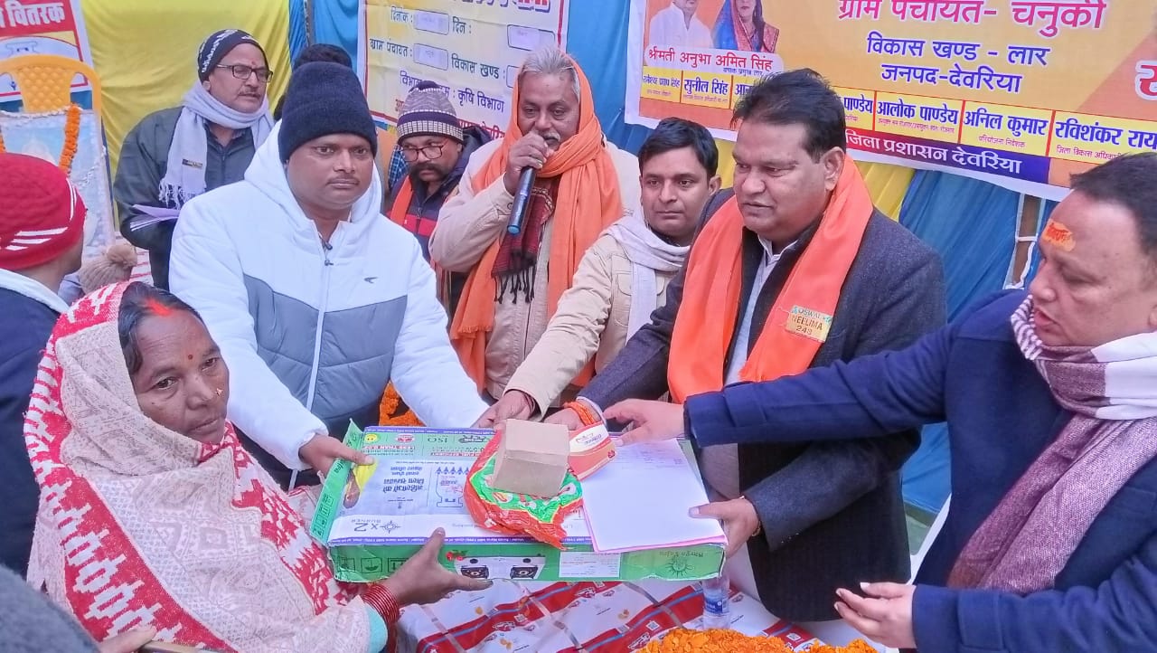 भाटपार रानी,देवरिया: विकसित भारत संकल्प यात्रा’ के तहत क्षेत्रीय भाजपा सांसद रविंद्र कुशवाहा व विधायक सभा कुंवर कुशवाहा रविवार को चनुकी के महंत राम नरेश दास आदर्श इंटर कॉलेज में पहुंचे। यहां सांसद व विधायक ने लार विकास खंड के लाभुकों से मिलकर भारत सरकार के विभिन्न योजनाओं की जानकारी दी। साथ ही लाभुकों को उज्ज्वला योजना के तहत गैस कनेक्शन का वितरण भी किया। इसके अलावा कई लाभुकों कों क़ृषि ऋण सहित अन्य योजनाओं के तहत लाभ पाए जाने की बात कही। उन्होंने किसानों को जैविक खेती के बारे में भी लोगो को बताया और जागरूक किया। इस कार्यक्रम में भाजपा नेता व जिला पंचायत अध्यक्ष पं० गिरीशचंद्र तिवारी ने वहां मौजूद लोगों को प्रधानमंत्री नरेंद्र मोदी द्वारा किए जा रहे कार्यों की जानकारी दी। उन्होंने केंद्र सरकार की जन कल्याणकारी योजनाओं को समझाते हुए आम जनता से इसका लाभ लेने का आह्वान किया। उन्होंने कहा कि आज पीएम मोदी के नेतृत्व में जिस तरह से अंतराष्ट्रीय स्तर पर हमारे देश भारत का नाम एक शक्तिशाली देश के रूप में उभर रहा है और प्रदेश का कायाकल्प हो रहा हैं। वहीं इस दौरान ब्लाक प्रमुख अमित सिंह बबलू ने विपक्षीय पार्टियों पर जमकर हमला किया। करमुआ इंडेन गैस एजेंसी के प्रोपराइटर ध्रुव कुमार ने उज्ज्वला योजना के तहत गरीब लोगों को सिलेंडर वितरण के बाद कहा कि गरीब महिलाएं जिस तरह से खाना बनाते समय लगातार धुआं लगने से बीमार पड़ रही थीं और खाना बनाने के लिए परिवारजनों को हमेशा लकड़ी लाने की चिंता भी बनी रहती थी। अब इन सब से मुक्ति मिल गई है। आज जिन माताओं-बहनों को उज्ज्वला का कनेक्शन मिला है, वे हृदय से प्रधानमंत्री मोदी का धन्यवाद कर रही है। इस कार्यक्रम में क्षेत्रीय ग्राम प्रधान प्रतिनिधि चनुकी शिव शम्भू पांडेय,सतीश वर्मा,बीडीओ लार, एडीओ समाज कल्याण मनोज सिंह व अन्य अधिकारीयों के अलावा विभिन्न समूह की महिलाओं, ग्रामीण लोग, भाजपा नेता व आदि कार्यकर्तागण मौजूद रहे।