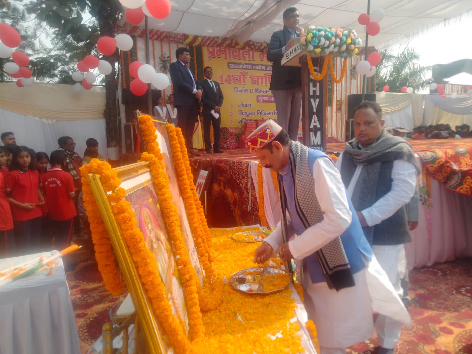 भाटपार रानी,देवरिया: स्थानीय तहसील क्षेत्र के प्रभावती महाविद्यालय खरवनियां नवीन के प्रबंधक नंदलाल जायसवाल के द्वारा 14वें वार्षिक प्रतिभा सम्मान, गरीबों में कंबल बितरण एवं सांस्कृतिक समारोह 10:00 बजे आयोजित किया गया। कार्यक्रम दो चरणां में सम्पन्न हुआ। प्रथम चरण के मुख्य अतिथि-सुधीर गर्ग (अपर मुख्य सचिव राजस्व विभाग उत्तर प्रदेश), कार्यक्रम के अध्यक्ष-जिला पंचायत अध्यक्ष पंडित गिरीशचंद्र तिवारी ने मां सरस्वती के चित्र पर पुष्प अर्पित करते हुए दीप प्रज्वलित कर कार्यक्रम का शुभारंभ किया।जिसमे विद्यालय के छात्र-छात्राओं में विभिन्न सांस्कृतिक कार्यक्रमों को प्रस्तुत किया। द्वितीय सत्र में मुख्य अतिथि डीएम देवरिया अखंड प्रताप सिंह व विशिष्ट अतिथि एसपी देवरिया संकल्प शर्मा की गरिमा में उपस्थिति में प्रारंभ हुआ जिसकी अध्यक्षता भाजपा नेता सर्वेशचंद्र तिवारी ने किया। जिसमें विभिन्न सांस्कृतिक कार्यक्रमों व कुश्ती प्रतियोगिता को देखकर समस्त श्रोतागण मंत्रमुग्ध हो गए। महाविद्यालय के प्राचार्य द्वारा समस्त अतिथियां का स्वागत गिफ्ट देते हुए अंगवस्त्र व पुष्पगुच्छ देकर किया गया। इस दौरान ठंड को देखते हुए दो हजार से अधिक गरीब व असहाय लोगों को कंबल वितरण किया गया। इस दौरान हृदयानंद पांडेय,अमित कुमार कुमार सिंह,अंशु तिवारी, अवधेश कुशवाहा, कृष्नमोहन पांडेय,रामप्रवेश साहनी,विनय पांडेय,दिप्पू पासवान,जोगिंद्र यादव,आशुतोष सिंह,दुर्गा मद्धेशिया,तारकेश्वर पांडेय आदि मौजूद रहे।