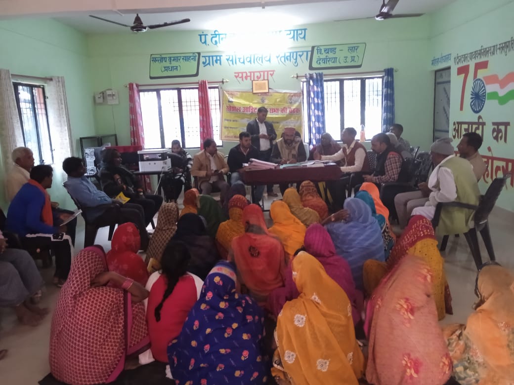 भाटपार रानी,देवरिया: लार विकास खंड के सोशल ब्लाक कोऑर्डिनेटर धीरेंद्र प्रताप सिंह के निर्देश पर सोशल ऑडिट सदस्यों द्वारा दिसंबर महीने तक के हुए मनरेगा व ग्राम आवास योजना के विकास कार्यों की जांच को लेकर विकास खंड के रतनपुरा गांव में ग्राम प्रधान,ग्राम पंचायत सदस्य व सोशल ऑडिट सदस्य बृजेश कुमार यादव ने बैठक की। बैठक में गांव के सभी विकास कार्य पूर्ण पाए गए इस दौरान मनरेगा श्रमिकों ने भी अपने द्वारा गांव में मनरेगा कार्य की सूची द्वारा कच्चें सड़कों के बेहतर निर्माण कराए जाने की बात कही।