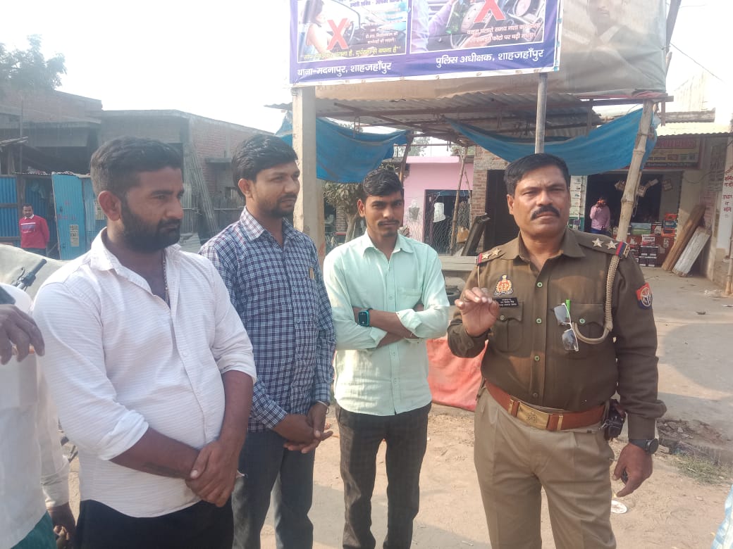 थाना मदनापुर पुलिस टीम द्वारा बुधवाना चौराह पर यातायात महा के उपलक्ष मे बैनर लगाकर लोगों को किया जागरूक दरअसल हम आपको बताते चलें उत्तर प्रदेश के जनपद शाहजहांपुर के थाना मदनापुर पुलिस टीम द्वारा पुलिस अधीक्षक अशोक कुमार मीणा के निर्देशानुसार आज यातायात महा के उपलक्ष में बैनर लगाकर लोगों को किया गया जागरूक वही आपको बता दें थाना प्रभारी अश्विनी कुमार के नेतृत्व में थाना मदनापुर पुलिस टीम के द्वारा आज बुधवाना चौराह पर पुलिस द्वारा यातायात महा के उपलक्ष में यातायात के नियमों का पालन करने हेतु यातायात बैनर लगाकर लोगों को जागरूक किया गया वही थाना चौकी प्रभारी रामकिशोर समस्त स्टाफ के साथ मौके पर मौजूद रहे वहीं लोगों को बाइक पर हेलमेट लगाकर और चार पहिया वाहन पर सीट बेल्ट लगाकर चलने का संदेश देते नजर आए