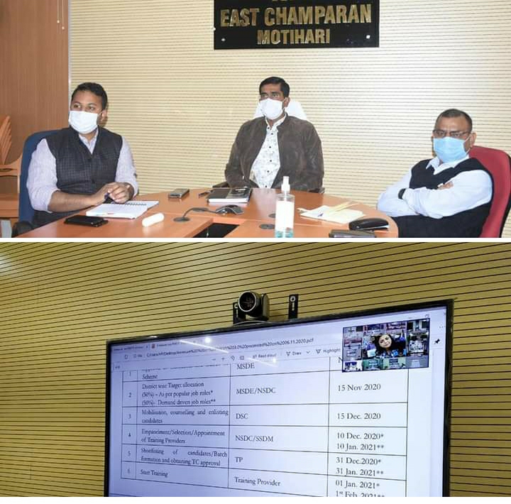 पूर्वी चंपारण, मोतिहारी... प्रधानमंत्री कौशल विकास योजना 3.0 को जल्द प्रारंभ किया जाना है इस बाबत वीडियो कॉन्फ्रेंसिंग के माध्यम से राष्ट्रीय कौशल विकास निगम के राज्य प्रभारी भावना झा ने सभी जिला कौशल समिति के सदस्यों को प्रधानमंत्री कौशल विकास योजना (PMKVY 3.0) के संबंध में विस्तार पूर्वक जानकारी दी... जिला कौशल समिति की भूमिकाओं और जिम्मेदारियों के बारे में बताया... वीडियो कॉन्फ्रेंसिंग में जिला पदाधिकारी श्री शीर्षत कपिल अशोक, सहायक समाहर्ता, अपर समाहर्ता, जिला कौशल प्रबंधक, डीआईओ, गोपनीय शाखा के विशेष कार्य पदाधिकारी मौजूद थे...