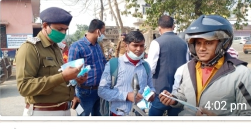 जिलाधिकारी श्री शीर्षत कपिल अशोक एवं पुलिस अधीक्षक श्री नवीन चंद्र झा एवं जिला के पदाधिकारीयों की टीम ने कोविड-19 के मद्देनजर मास्क लगाने को ले थाना चौक एवं छतौनी चौक पर मास्क लगाने एवं सोशल डिस्टेंसिंग का पालन करने हेतु लोगों से अपील की गई... कोविड-19 से बचाव हेतु जिलाधिकारी महोदय ने मास्क लगाने की सलाह दी। उक्त जांच के दौरान बिना मास्क के लोगों से वसूला गया जुर्माना... मास्क लगाने की दी गई नसीहत... जिला प्रशासन की ओर से दी गई मास्क... उक्त मौके पर एसडीओ सदर, जिला परिवहन पदाधिकारी, अंचलाधिकारी/प्रखंड विकास पदाधिकारी मोतिहारी, पुलिस निरीक्षक नगर थाना/ छतौनी थाना, जिला सूचना जनसंपर्क पदाधिकारी सहित अन्य अधिकारी मौजूद थे.....जिले के सभी अनुमंडलों, सभी प्रखंडों, नगर पंचायतों में ड्राइव चलाकर मास्क लगाने का लोगों को नसीहत दिया गया और उससे जुर्माने की राशि वसूल की गई...