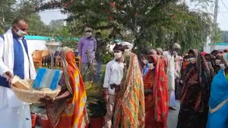 पताही प्रखंड के सरैयागोपाल पंचायत में सैकड़ो छठ व्रतियों के बीच साड़ी एवं छठ पूजा सामग्री का वितरण मुखिया सुरेश प्रसाद सिह एवं उनके पुत्र युवा नेता अमित अभिषेक उर्फ लड्डू द्वारा वितरित किया गया। उनके द्वारा छठ व्रतियों के बीच साड़ी , दउरा , सुपली , निब्बो , नारियल , सहित अन्य पूजा सामग्री एवं के साथ नगद राशि का वितरण किया गया। इस दौरान युवा नेता अमित अभिषेक उर्फ लड्डू सिह ने कहा कि छठ पूजा करने वालो के बीच छठ पूजा सामग्री वितरण करने से पूण्य की प्राप्ति होता है। और पंचायत में अवस्थित गरीब निसहाय लोगों का मददत करने के उद्देश्य से यह कार्यक्रम हर वर्ष किया जाता है। मौके पर राहुल कुमार , युवा नेता के पुत्र अमया अभिषेक उर्फ ओमी बाबू नवनीत कुमार , कटारी , छठ व्रती गीता देवी , राजकली देवी , शिला देवी , प्रभा देवी , मोहनी देवी सहित दर्जनों छठ व्रती महिलाएं उपस्थित थे।