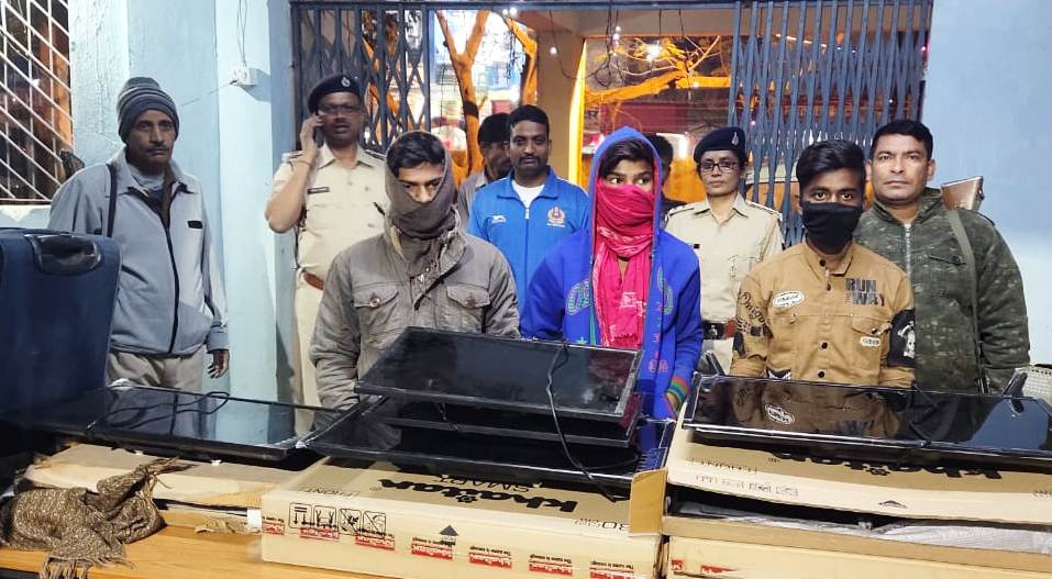 मोतिहारीः गुप्त सूचना के आधार पर जिले के ढ़ाका थाने की पुलिस ने रविवार को छापेमारी कर चोरी की 10 एलईडी, लेनेवो कंपनी का दो लैपटॉप व सफारी कंपनी का एक ट्रॉली बैग बरामद किया है। गिरफ्तार चोरों में सभी ढ़ाका थाना क्षेत्र के पिपरा निवासी श्यामनाथ पटेल का पुत्र पिंटु कुमार, टुनटुन पासवान का पुत्र हरिओम कुमार, सेराजुल हक का पुत्र शफी हैदर बताया गया है। पुछताछ के बाद तीनों चोरों को न्यायिक हिरासत में जेल भेज दिया गया है।