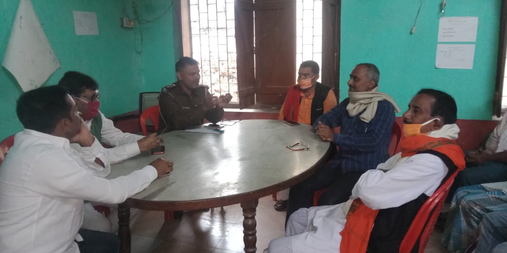 फेनहारा महान पर्व छठ पूजा को लेकर सोमवार को थाना के समीप आइभी भवन में शांति समिति की बैठक की गई. बैठक की अध्यक्षता प्रखंड विकास पदाधिकारी उमेश कुमार सिंह ने किया.इस दौरान उन्होंने उपस्थित जनप्रतिनिधियों व समाजिक कार्यकर्ताओं से कहा कि कोविड-19 को ध्यान में रखते हुए. सोशल डिस्टेंस के आधार पर पावन पर्व छठ पूजा को हम सभी शांति पूर्ण महौल में संपन्न करेंगे. सरकार के निर्देश का भरपूर पालन करना है. मौके पर थानाध्यक्ष धूर्ब नारायण सिंह प्रमुख कमलेश कुमार उर्फ मंटू सिंह भाजपा अध्य्क्ष रबिन्द्र तिवारी रमेश तिवारी नरेंद्र साह हरेंद्र सिंह गुलटेन पासवान आदि उपस्थित थे