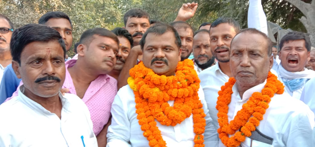 बंजरिया:-लोजपा उम्मीदवार सोनू मुखिया का कार्यकर्ताओ ने कर्पूरी ठाकुर कॉलेज के पास भब्य स्वागत किया