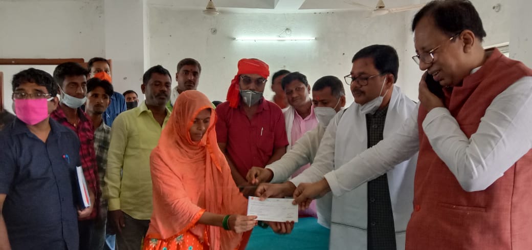 बंजरिया:-सांसद व बिधायक ने संयुक्त रूप से 3 मृतक के आश्रित को 4-4 लाख का चेक दिया