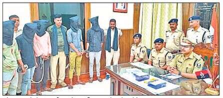 आदापुर थाना क्षेत्र के रक्सौल-घोड़ासहन कनॉल रोड पर एक बगीचा से पुलिस ने पांच बदमाशों को दबोच लिया। बदमाशों के पास से दो देसी पिस्तौल, चार कारतूस, लूट की बाइक व खटका चाकू बरामद किया गया है। गिरफ्तार बदमाशों में आदापुर धबधबवा के सन्नी कुमार, राजा पासवान, साबीर आलम, नगर बेलबनवा के कृष्णा कुमार व छतौनी बड़ा बरियारपुर के विक्की कुमार शामिल है। एसपी कांतेश कुमार मिश्र ने जानकारी दी।