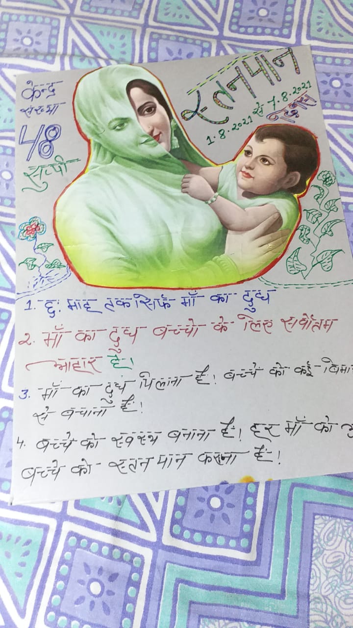 जिला स्वास्थ्य समिति सभागार में विश्व स्तनपान सप्ताह के अवसर पर मंगलवार को सिविल सर्जन महोदय की अध्यक्षता में जिला अंतर्गत सभी प्रभारी चिकित्सा पदाधिकारी एवं प्रखंड सामुदायिक उत्प्रेरक का जिला स्तरीय उन्मुखीकरण का आयोजन किया गया। पीरामल स्वास्थ्य के डी टी एम रवि रंजन कुमार एवं विजय शंकर पाठक के द्वारा पीपीटी के माध्यम से स्तनपान के महत्त्व, इसके फायदे, कोविद से संक्रमित महिलाओ या बच्चो को स्तनपान कैसे कराया जाये के ऊपर बताया गया। एसीएमओ डा० रविन्द्र कुमार यादव के द्वारा बताया गया की सभी प्राथमिक स्वास्थ्य केन्द्रों पर धात्री माँ के लिए स्तनपान कोर्नर बनाना सुनिश्चि करे जिससे अस्पताल आने वाली माताओ को स्तनपान करने में निजता एवं सुरक्षित महसूस करें। साथ ही साथ प्रत्येक प्राथमिक स्वास्थ्य केद्रो के लिए एक डॉक्टर एवं एक नर्स को नोडल नामित किया जाये जिससे जन्म के तुरंत स्तनपान एवं 6 माह तक केवल स्तनपान को बढावा दिया जा सके। सिविल सर्जन डा० सुरेश चन्द्र लाल, एसीइमओ डा० रविन्द्र कुमार यादव, एनसीडीओ डा० सुनील सिन्हा, डीसीएम समरेन्द्र नारायण पीरामल स्वास्थ्य के डी टी एम रवि रंजन कुमार एवं विजय शंकर पाठक, केयर इंडिया से अनुकृति एवं सभी प्रभारी चितित्सा पदाधिकारी एवं प्रखंड सामुदायिक उत्प्रेरक के द्वारा स्तनपान को बढावा देने हेतु एवं अस्पताल को बोतल मुक्त संस्थान घोषित करने हेतु शपथ ग्रहण का आयोजन किया गया। जिला स्तरीय उन्मुखीकरण के उपरांत सिविल सर्जन डा० सुरेश चन्द्र लाल, एसीइमओ डा० रबिन्द्र कुमार यादव, एनसीडीओ डा० सुनील सिन्हा, डीसीएम समरेन्द्र नारायण पीरामल स्वास्थ्य के डी टी एम रवि रंजन कुमार एवं विजय शंकर पाठक, केयर इंडिया से अनुकृति एवं सभी प्रभारी चितित्सा पदाधिकारी एवं प्रखंड सामुदायिक उत्प्रेरक के द्वारा ईआइबीएफ स्टीकर का लॉन्च किया गया। यह स्टीकर प्राथमिक स्वास्थ्य केन्द्रों पर जन्म लेंने उपरांत स्तनपान कराने के बाद एमसीपी कार्ड पर चिपका दिया जायेगा जिससे पता चलेगा की शिशु को जन्म के 1 घंटे के अन्दर दुध पिलाया गया।तदुपरांत सिविल सर्जन डा० सुरेश चन्द्र लाल, एसीइमओ डा० रबिन्द्र कुमार यादव, एनसीडीओ डा० सुनील सिन्हा, डीसीएम समरेन्द्र नारायण पीरामल स्वास्थ्य के डी टी एम रवि रंजन कुमार एवं विजय शंकर पाठक, केयर इंडिया से अनुकृति एवं सभी प्रभारी चितित्सा पदाधिकारी एवं प्रखंड सामुदायिक उत्प्रेरक के द्वारा विश्व स्तनपान सप्ताह हेतु हस्ताक्षर अभियान की शुरुआत की गई।विस्तृत जानकारी के लिए ऑडियो पर क्लिक करें।