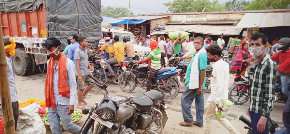 सुगौली। छपवा सब्जी बजार में कोरोना गाइडलाइंस का लोग उड़ा रहे धज्जियां। बजारों में सुबह उमड़ रही भाड़ी भीड़।