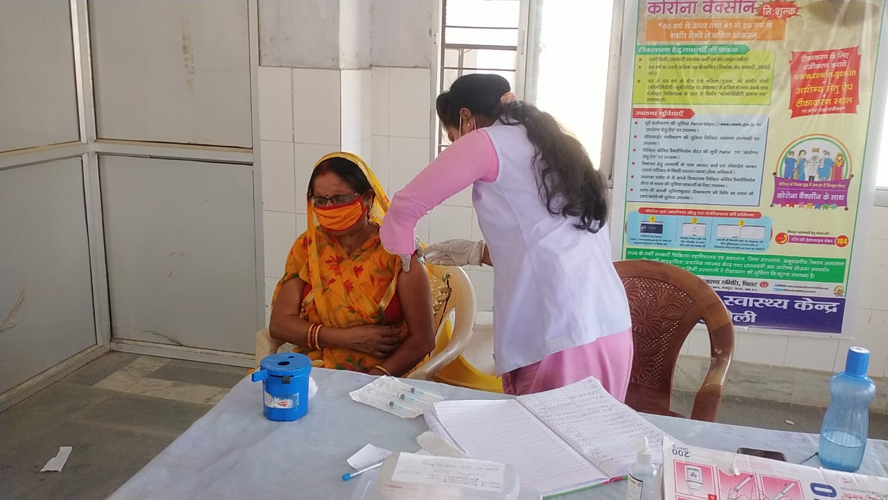 सुगौली। 45 से उपर उम्र वाले को कोविड 19 का टिका लगाया गया।